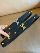 LV INITIALES STUDS 30 MM REVERSIBLE BELT IN BLACK CALFSKIN GOLD HARDWARE