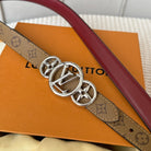 LV S-LOCK BELT 20 MM BROWN MONOGRAM AND AUBURN RED CALFSKIN SILVER HARDWARE