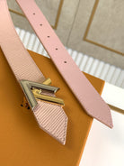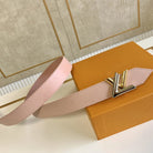 WOMEN'S LV BELT SILVER BUCKLE ROSE LEATHER 30MM