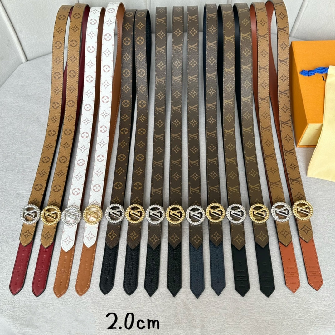 LV Circle 20mm Reversible Belt Silver Buckle Black Brown Leather