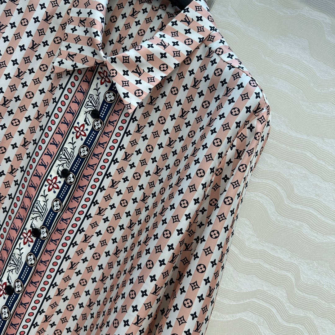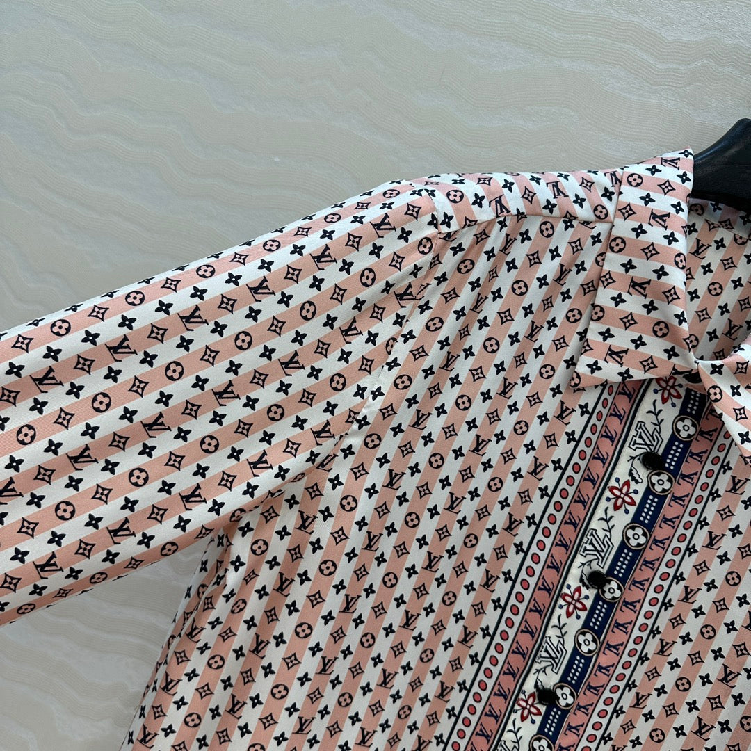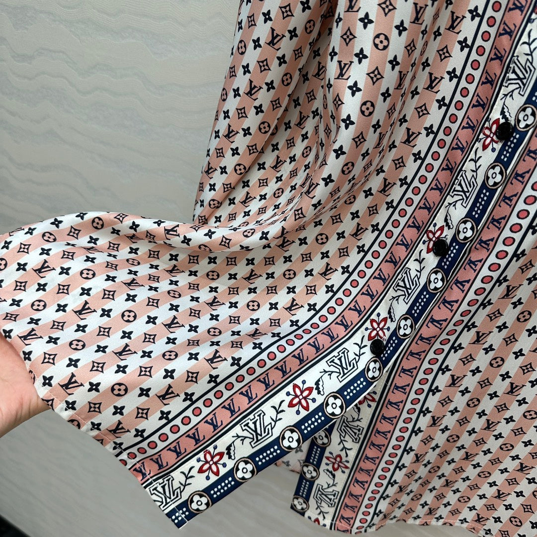 LV 25 Retro Hong Kong Small Flying Sleeve Shirt Pink Black Blue Viscose Rayon