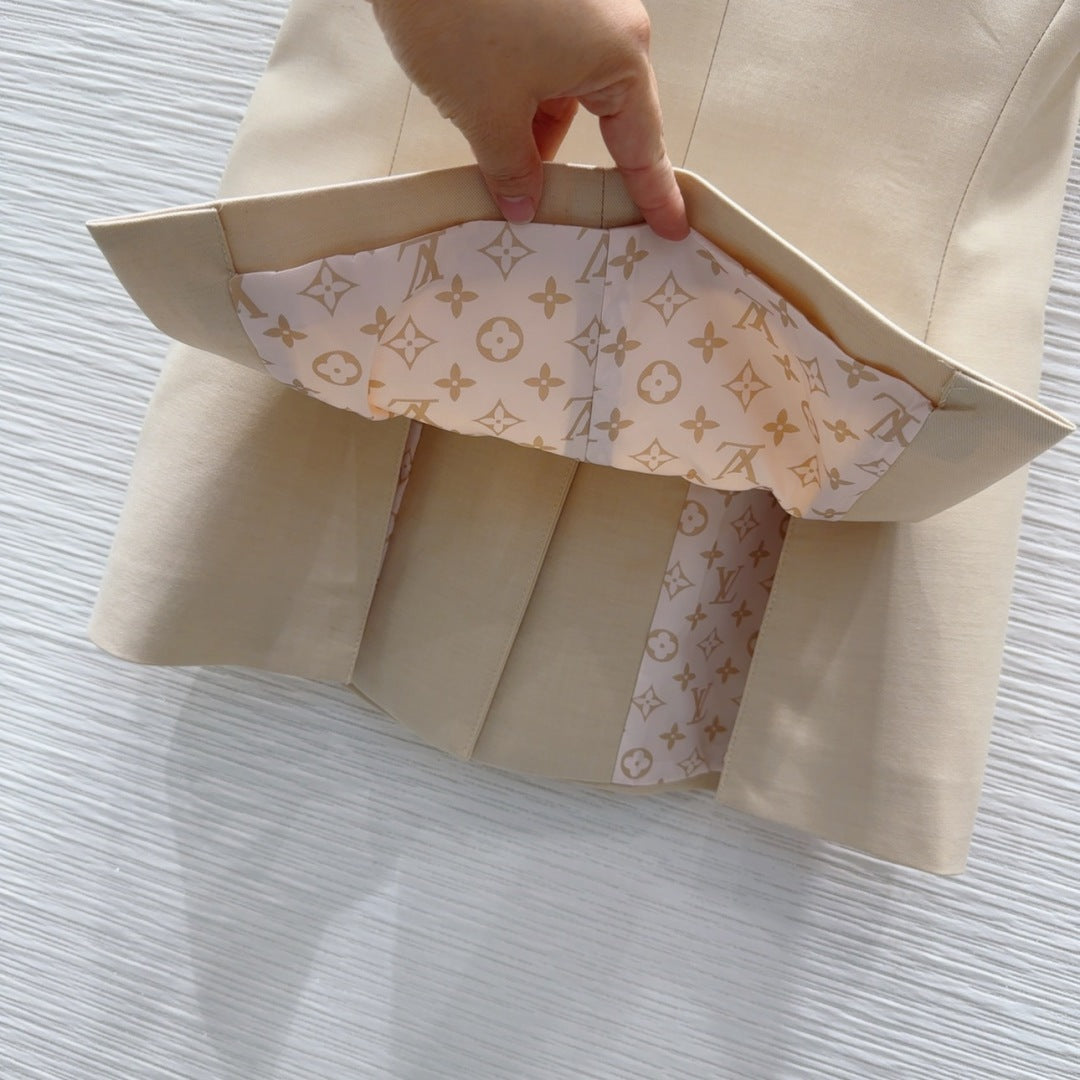 LV 25 Bourgoise Series Printed Zipper Denim Skirt White Cotton