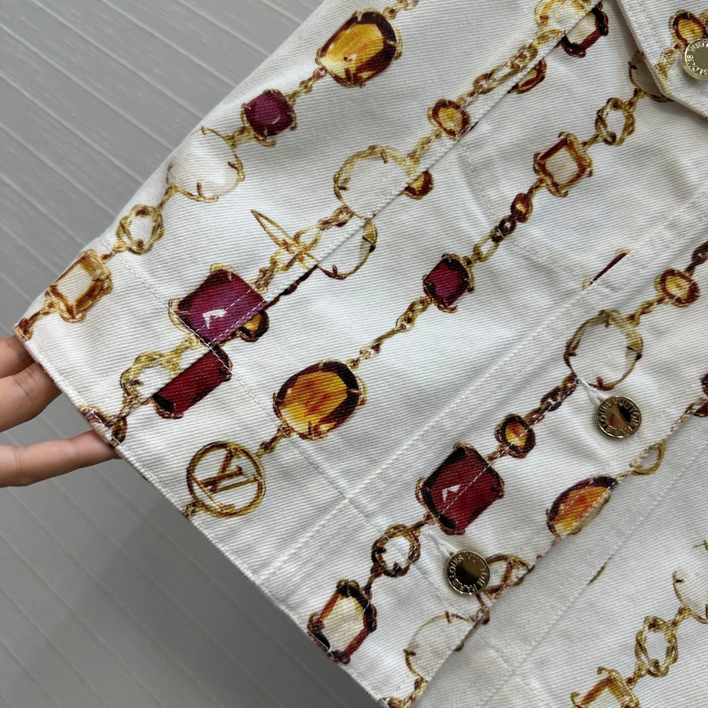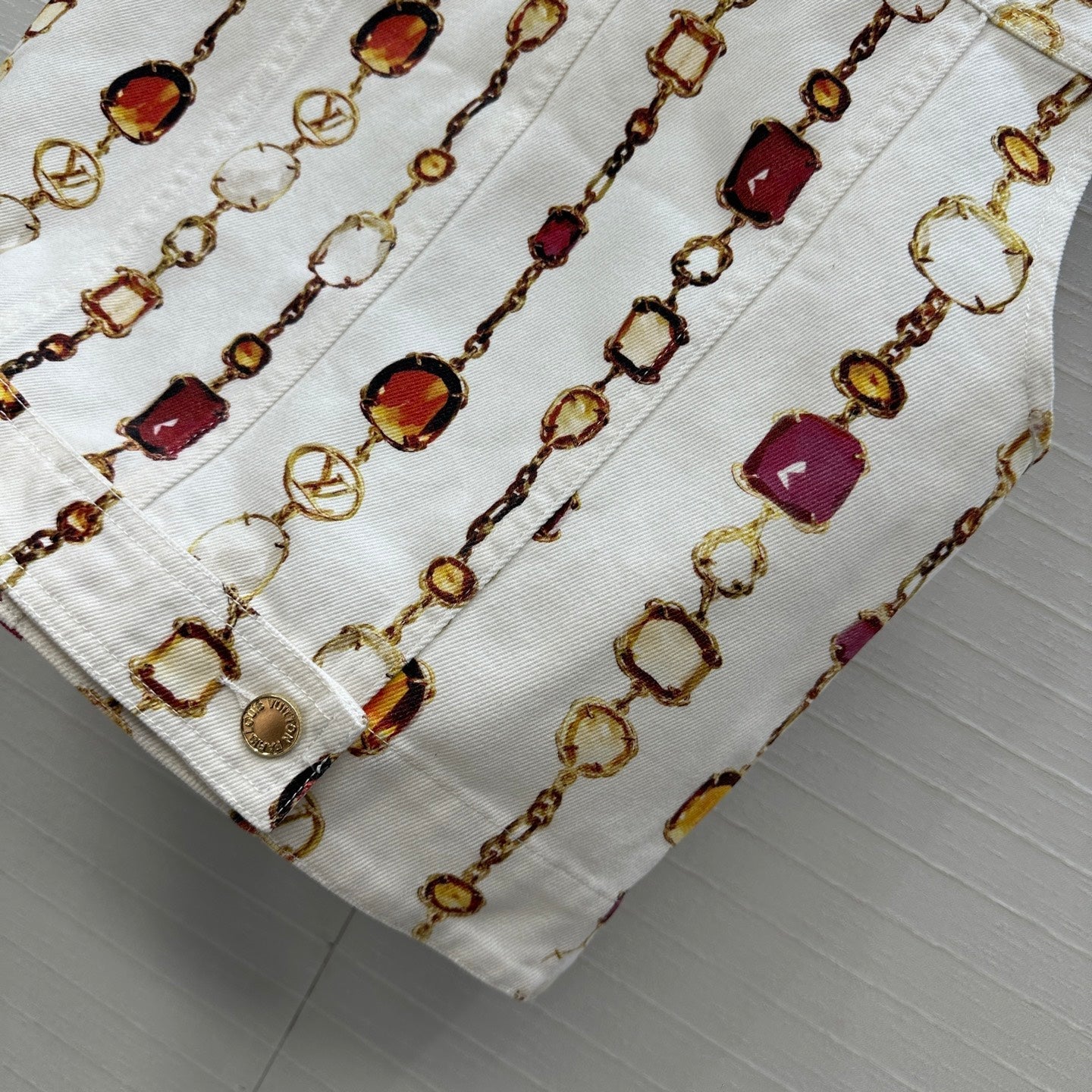 LV 25 Bourgoise Series Printed Zipper Denim Shorts White Cotton