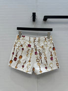 LV 25 Bourgoise Series Printed Zipper Denim Shorts White Cotton