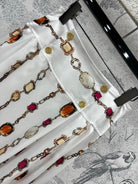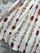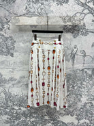 LV 25 Decorative Pattern Gemstone Chain Pleated Skirt White Poliester