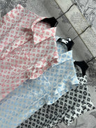 LV 25 Retro Hong Kong Small Flying Sleeve Shirt Pink Black Blue Viscose Rayon
