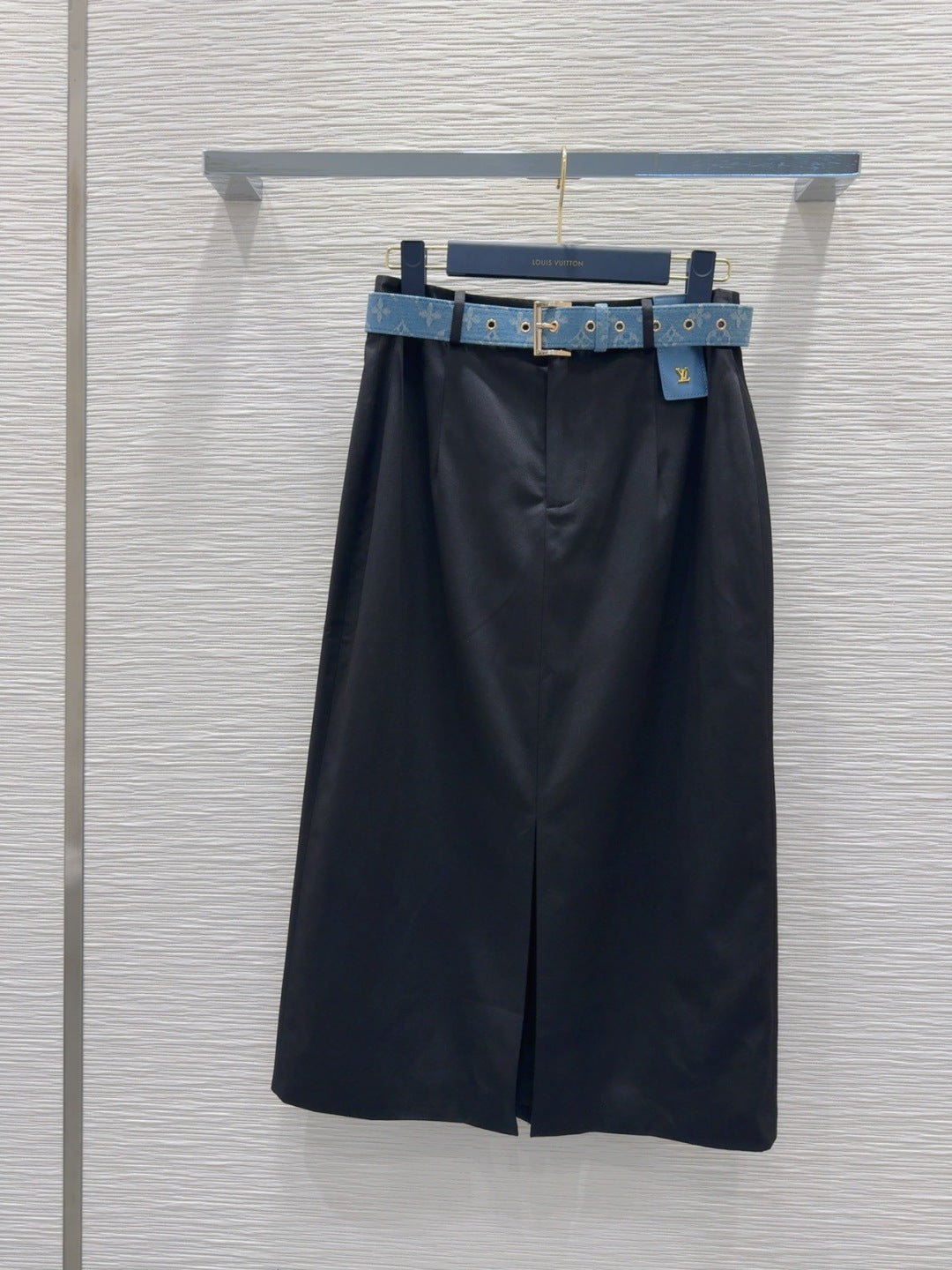 LV 25 Classic Logo Denim Skirt Black Cotton