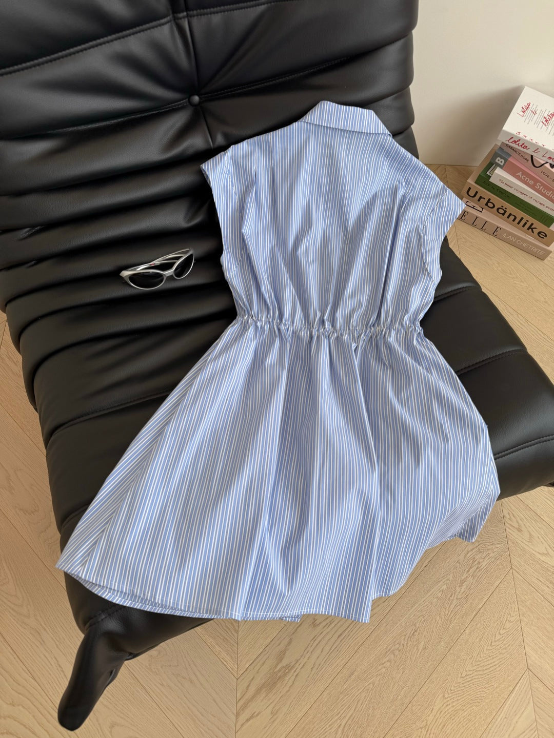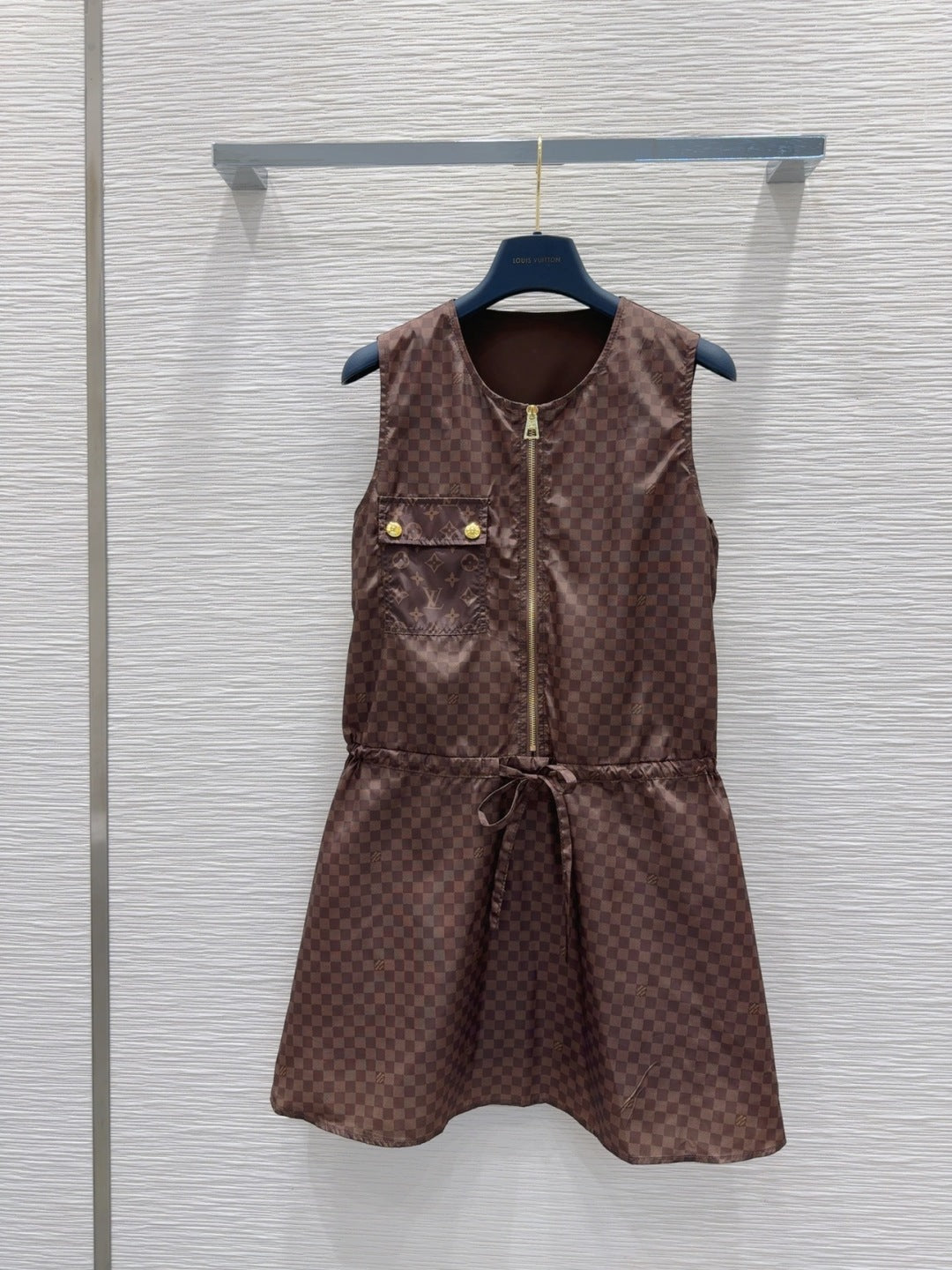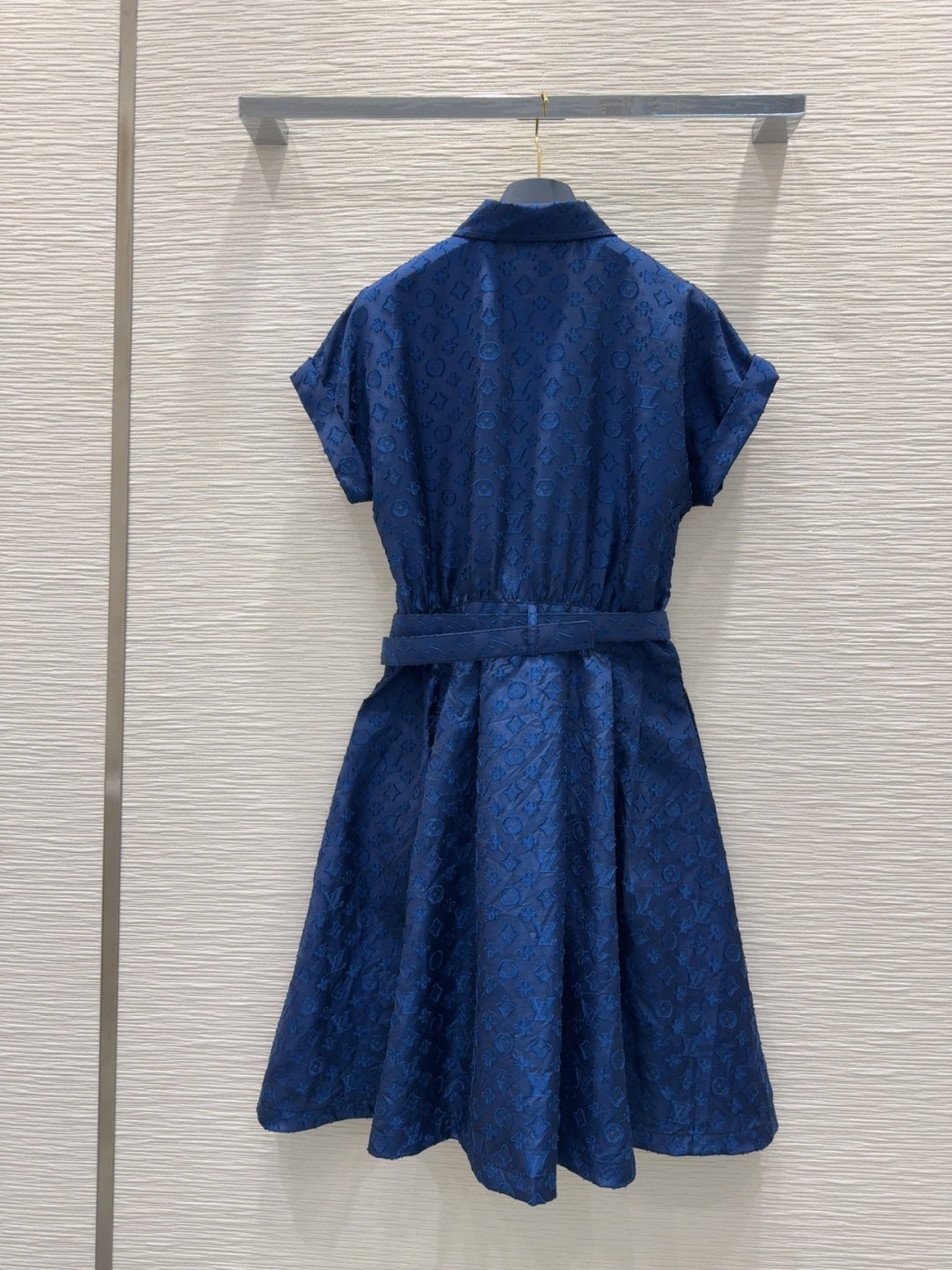 LV 25S Blue Belted Dress White Brown Cotton Polyester