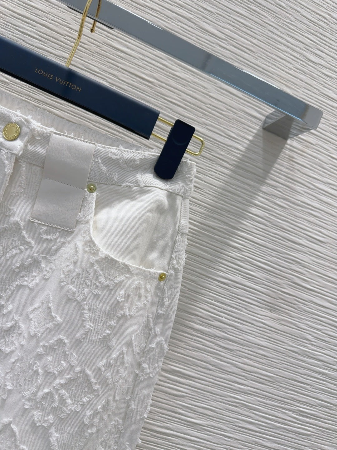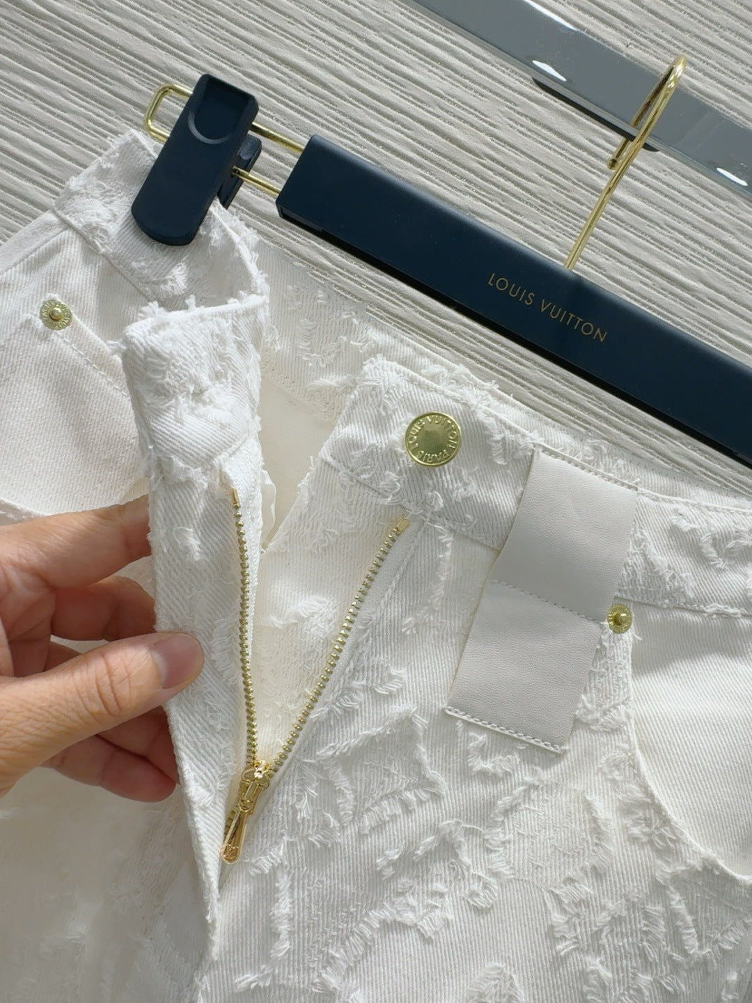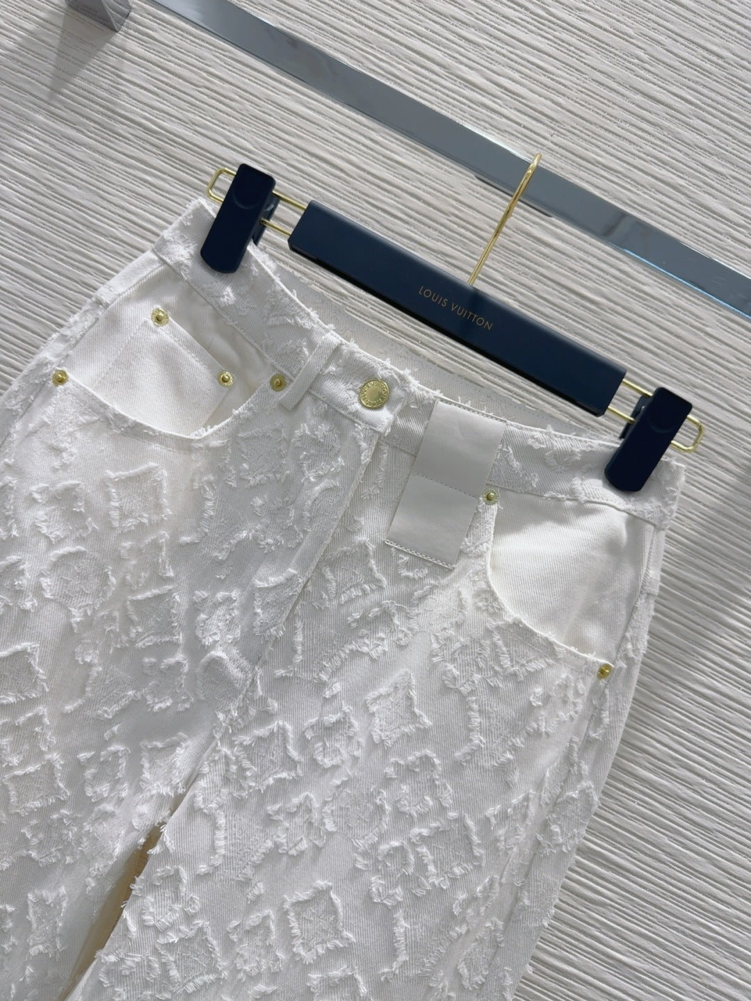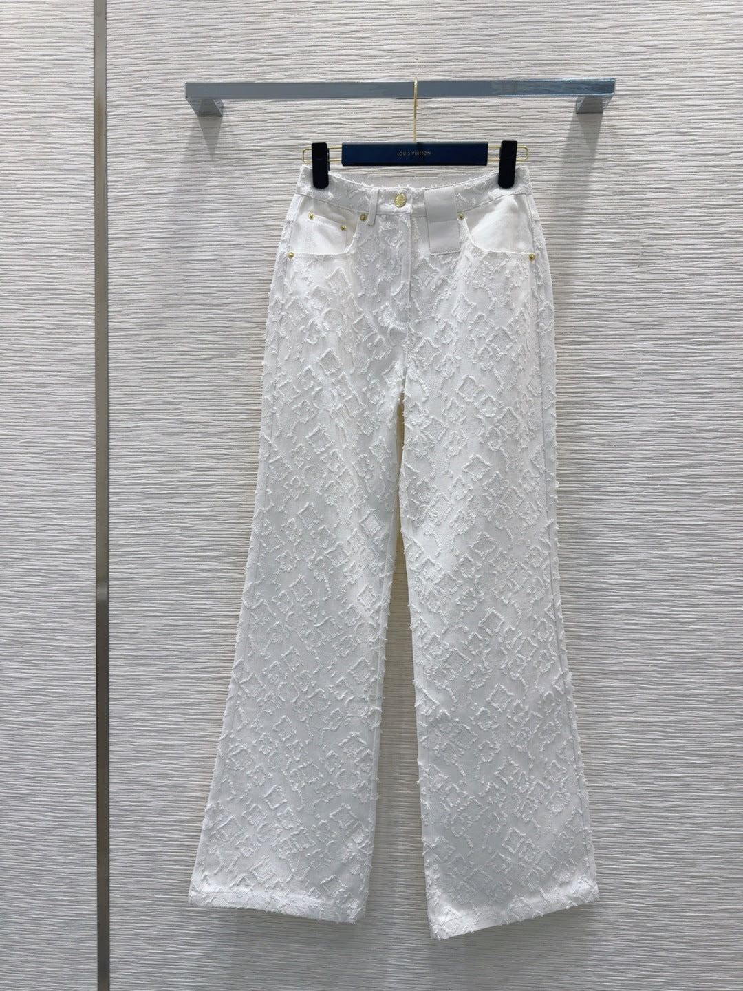 LV 25S Metal Pants Zipper Pants White Cotton