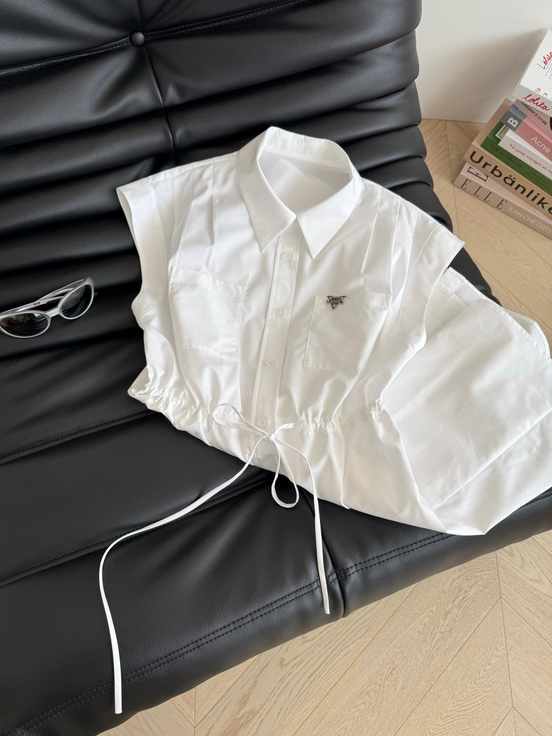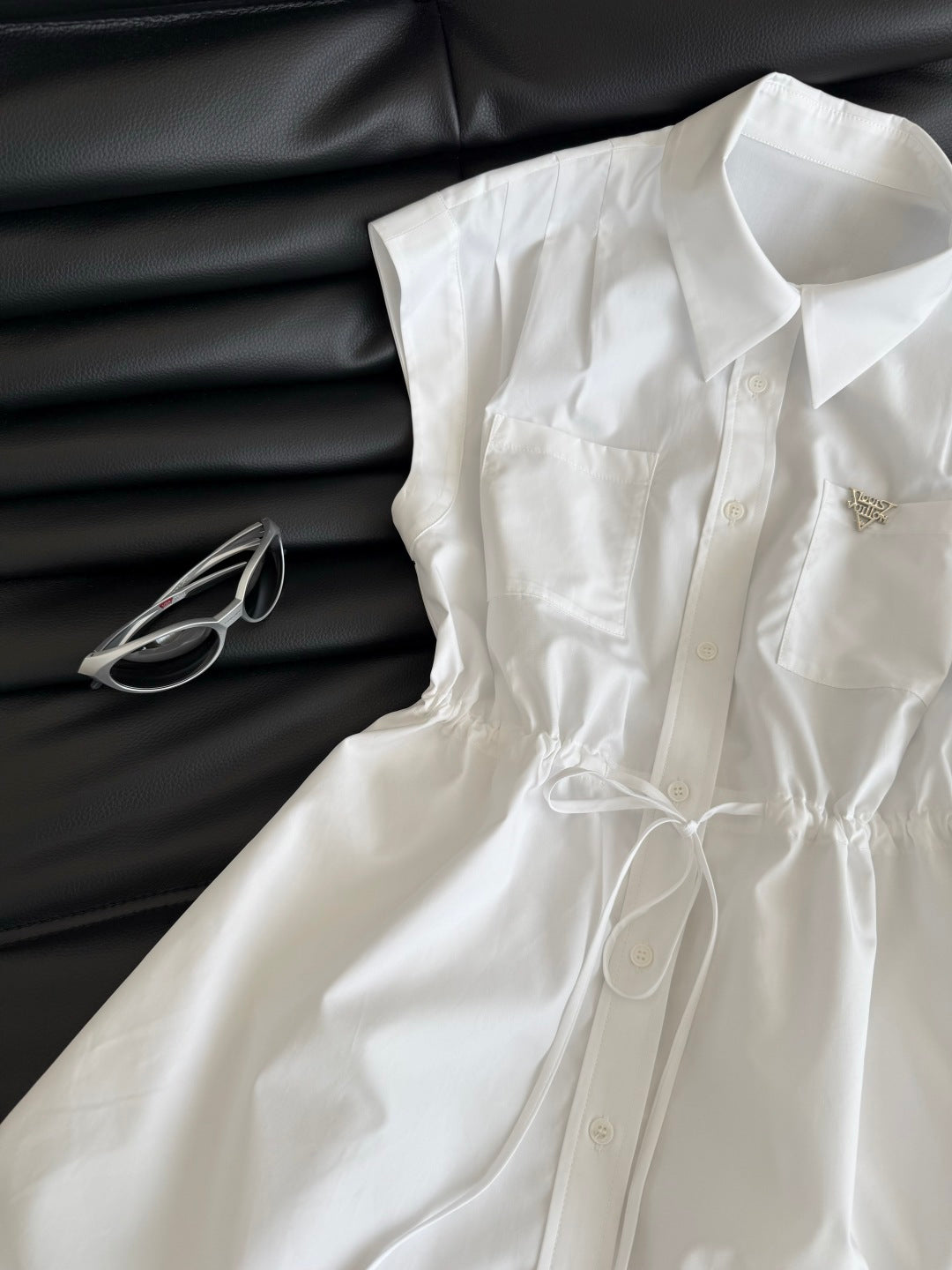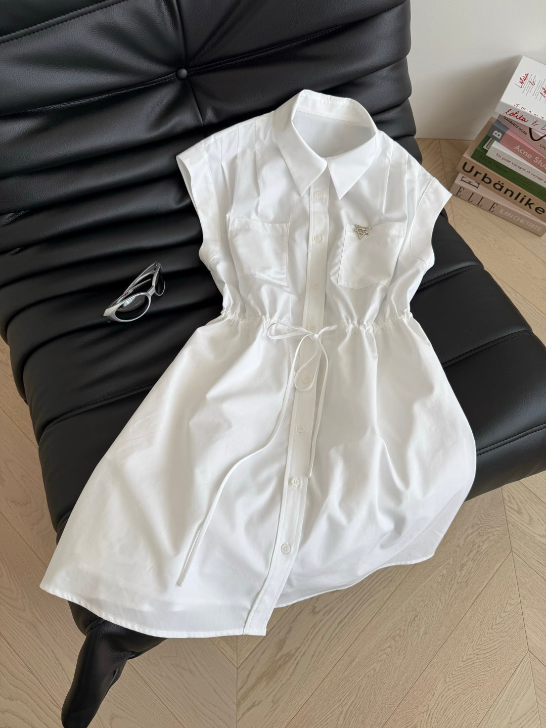 LV 25S Back Zipper Cute Vest Dress White Cotton