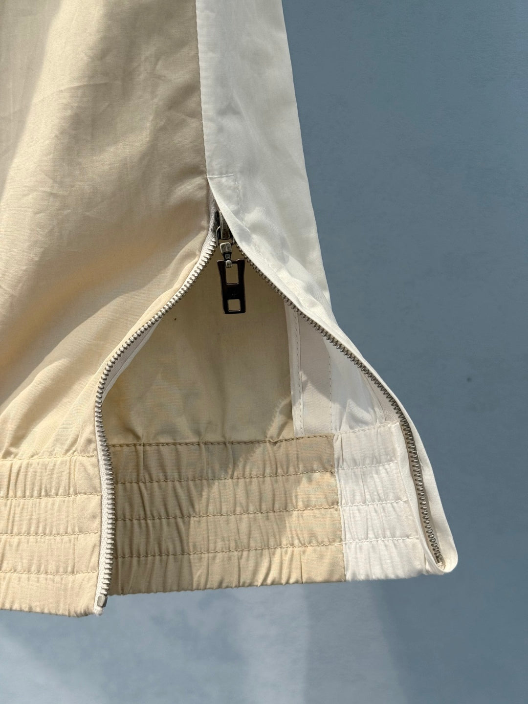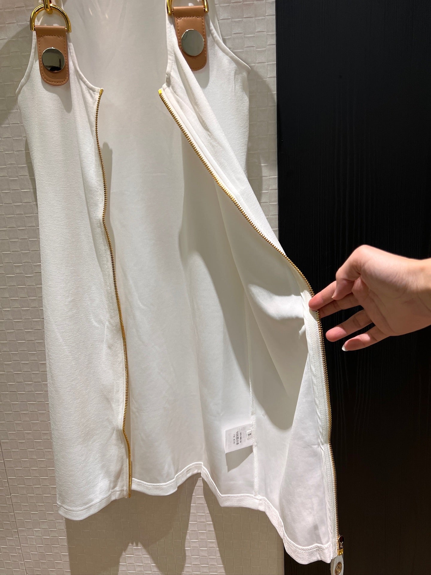 LV Double-Head Zipper Design Slits Dress White Cotton