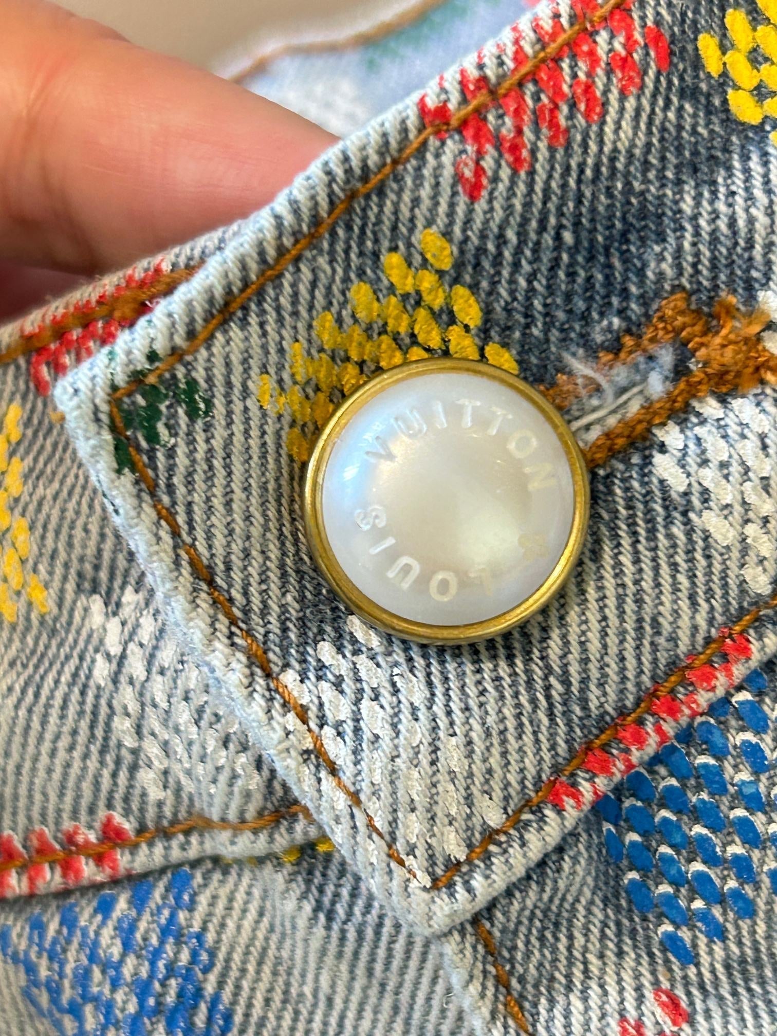 LV Plaid Multicolor Denim Jeans Blue Cotton