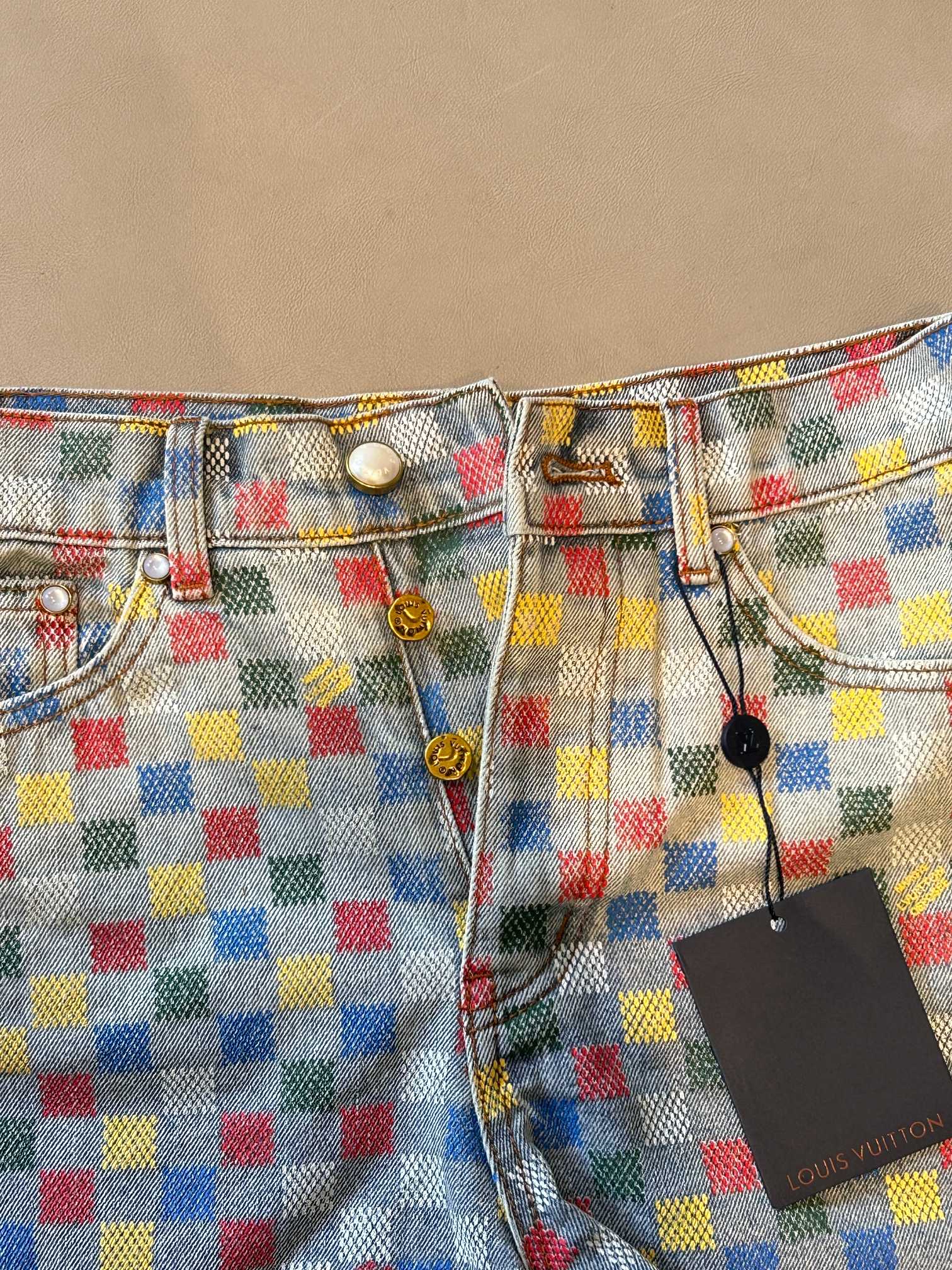 LV Checkerboard Design Jeans Multicolor Cotton