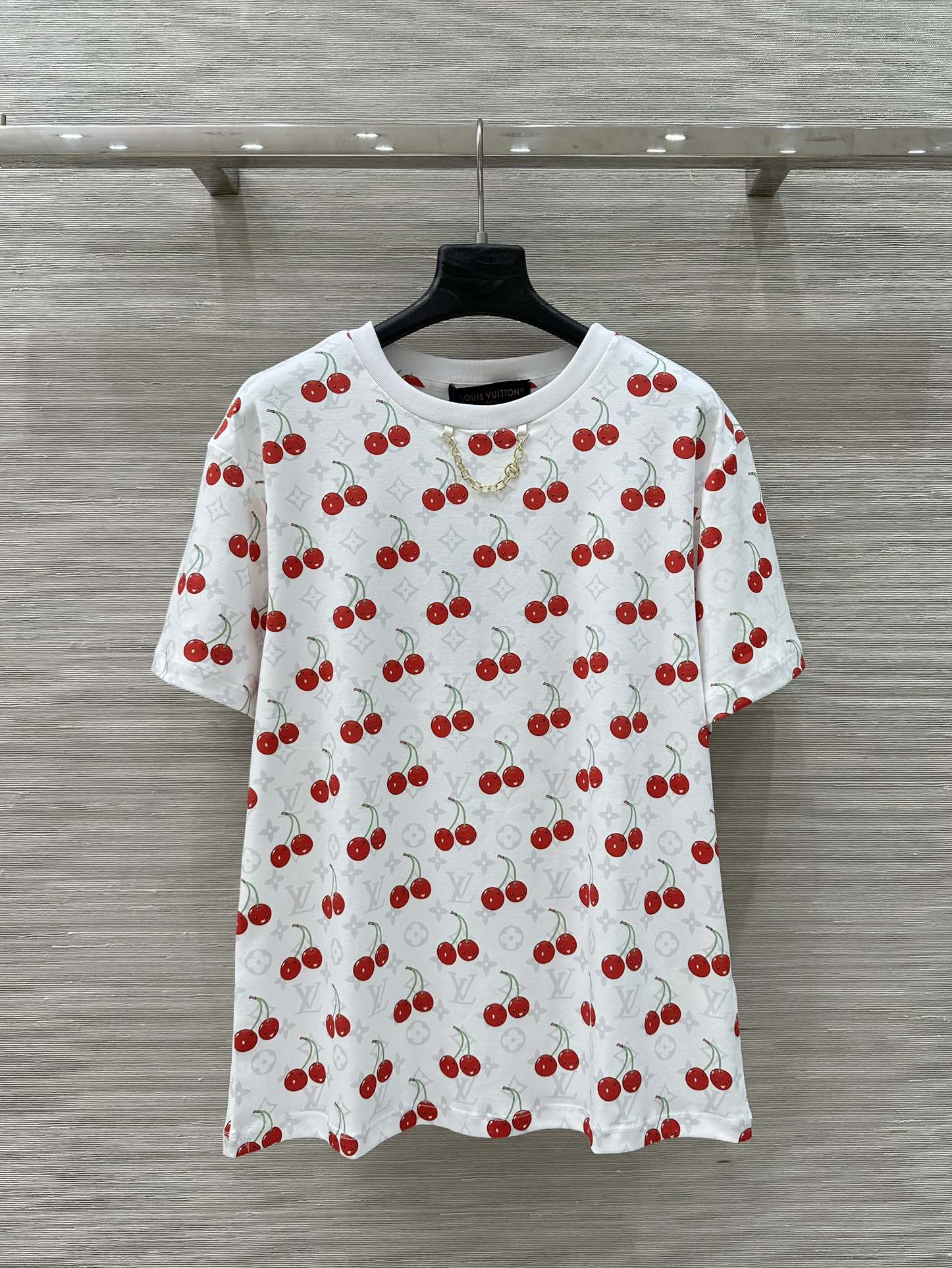 LV Classic Monogram Print Cherry White Red Cotton