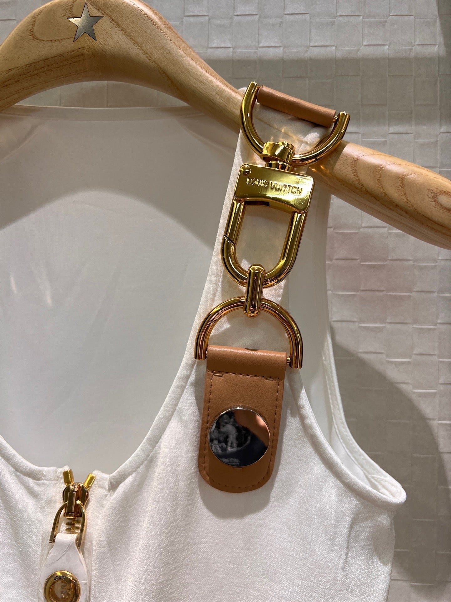 LV Metal Buckle Decorated Camisole Shirt White Cotton