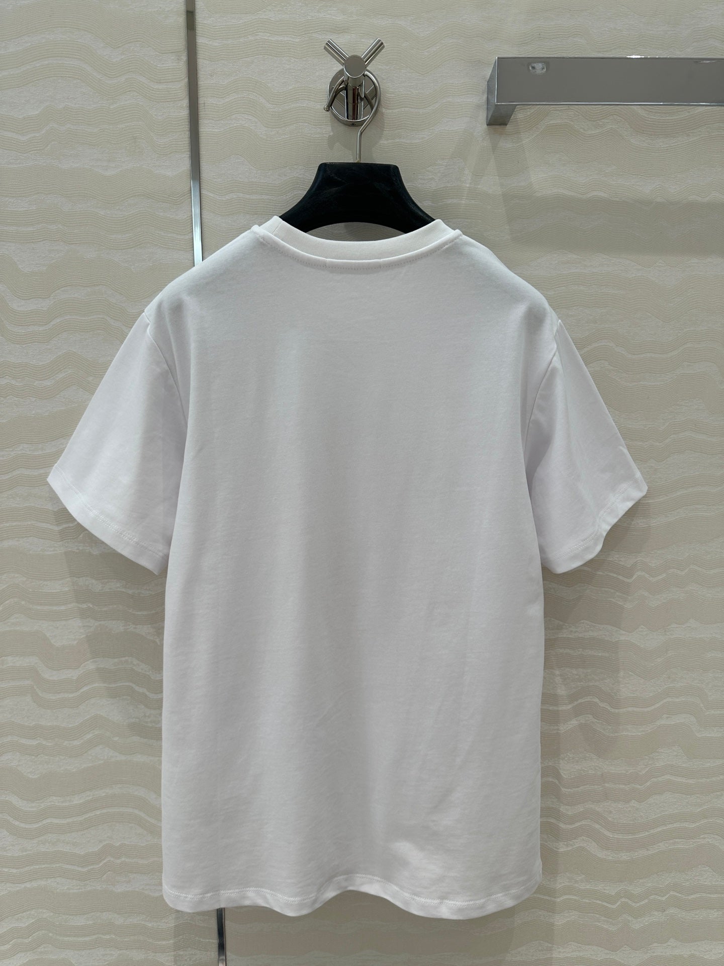 LV High-Sense Silk Scarf T-shirt Black White Cotton
