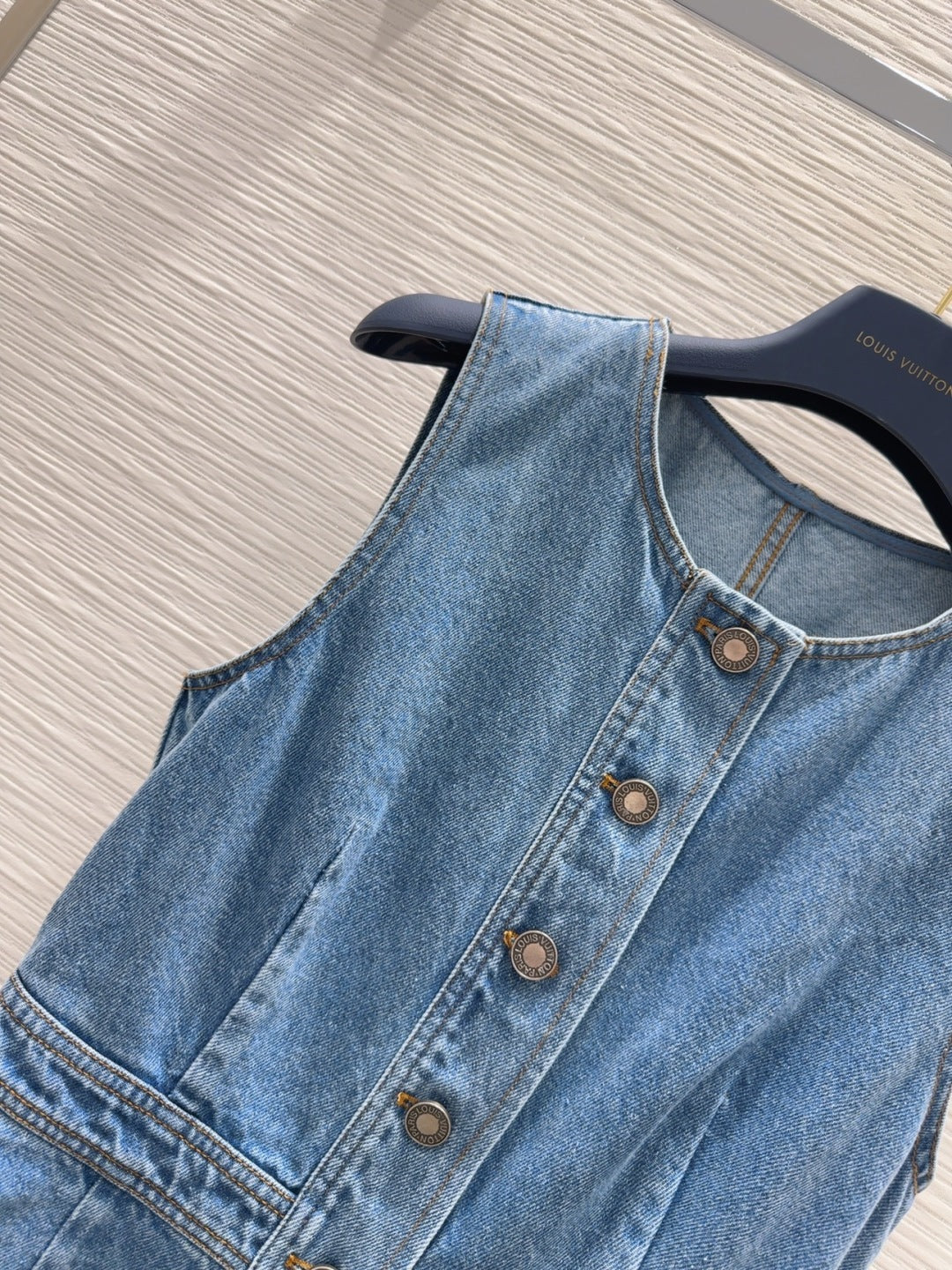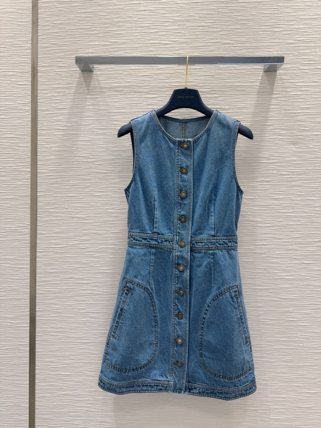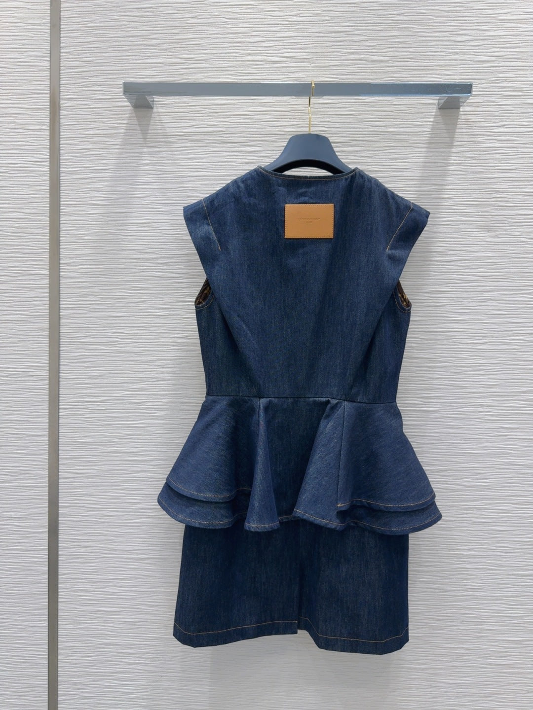 LV Hair Edge Craftsmanship Denim Dress Blue Cotton