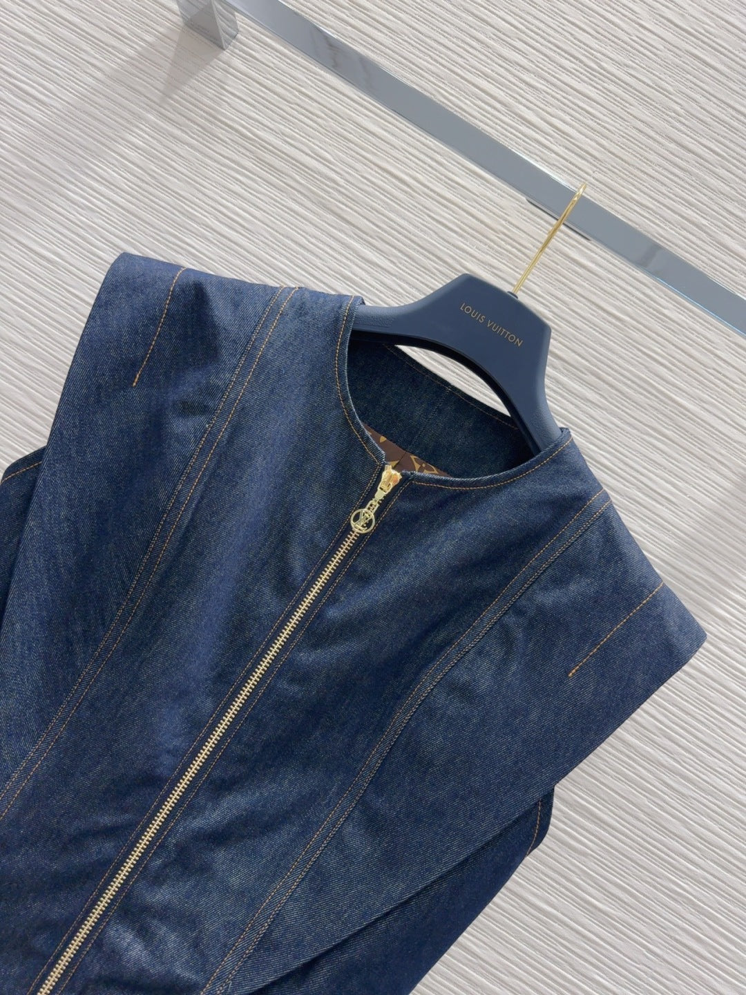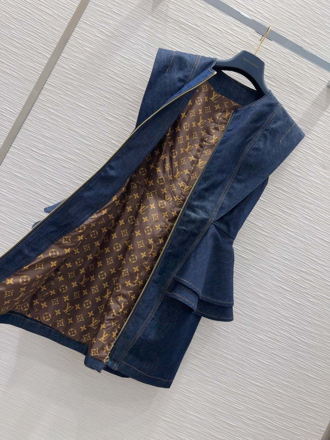 LV Denim Fabric Double Head Zipper Dress Black Blue Cotton