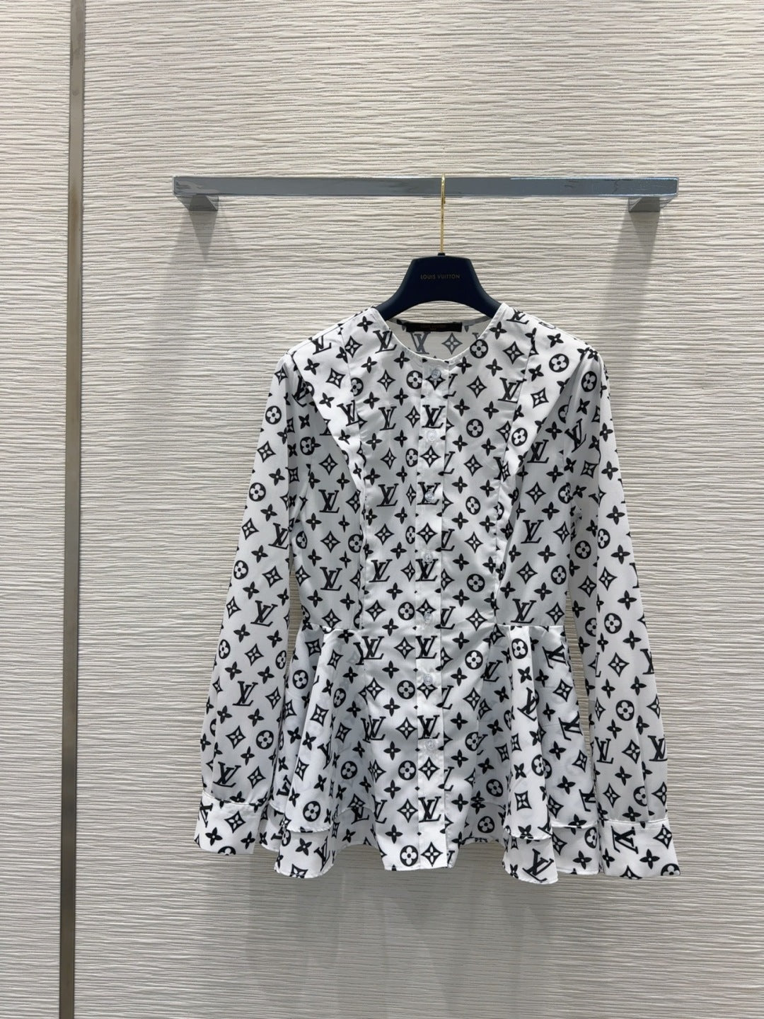 LV 25 Slightly Transparent Shirt Black White Polyester