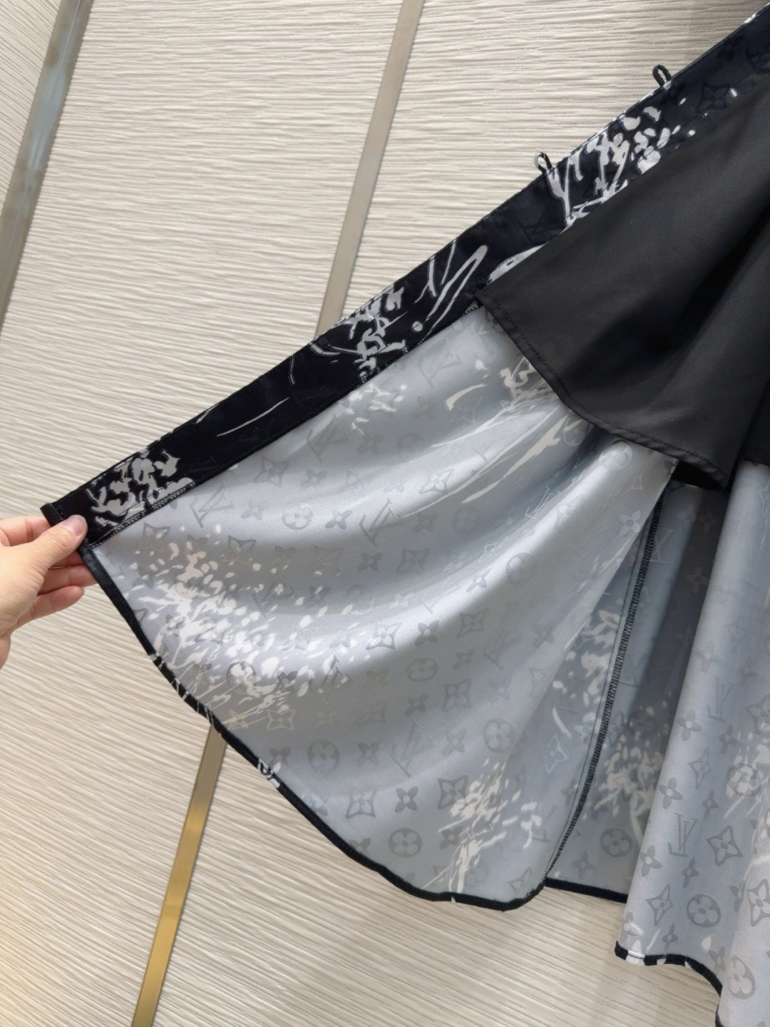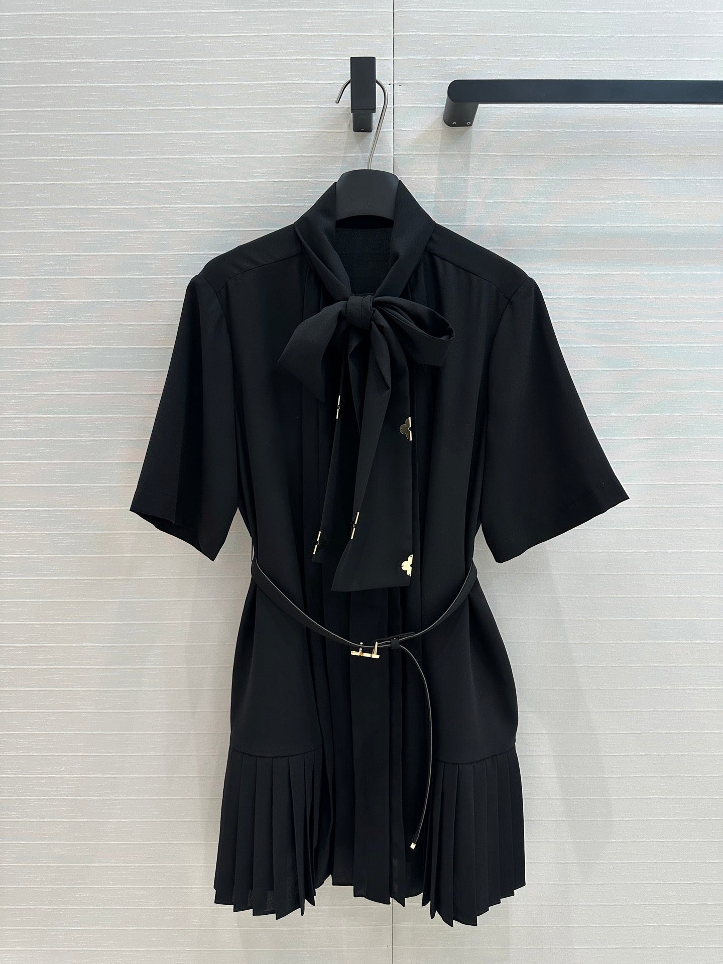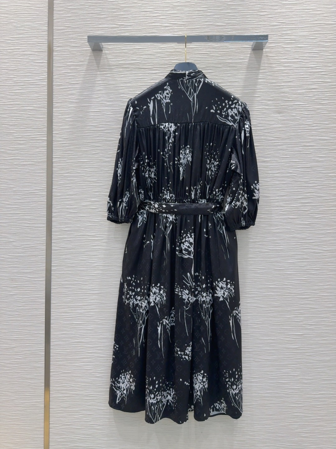LV 25 Palace Style Short-Sleeved Dress Black Polyester