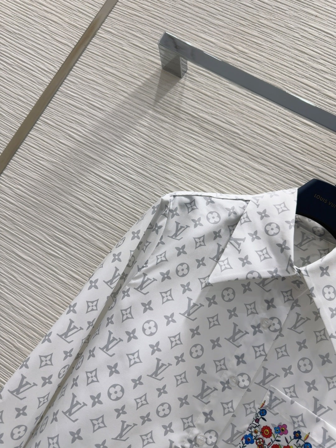LV 25 Floral Wristband Shirt White Grey Polyester