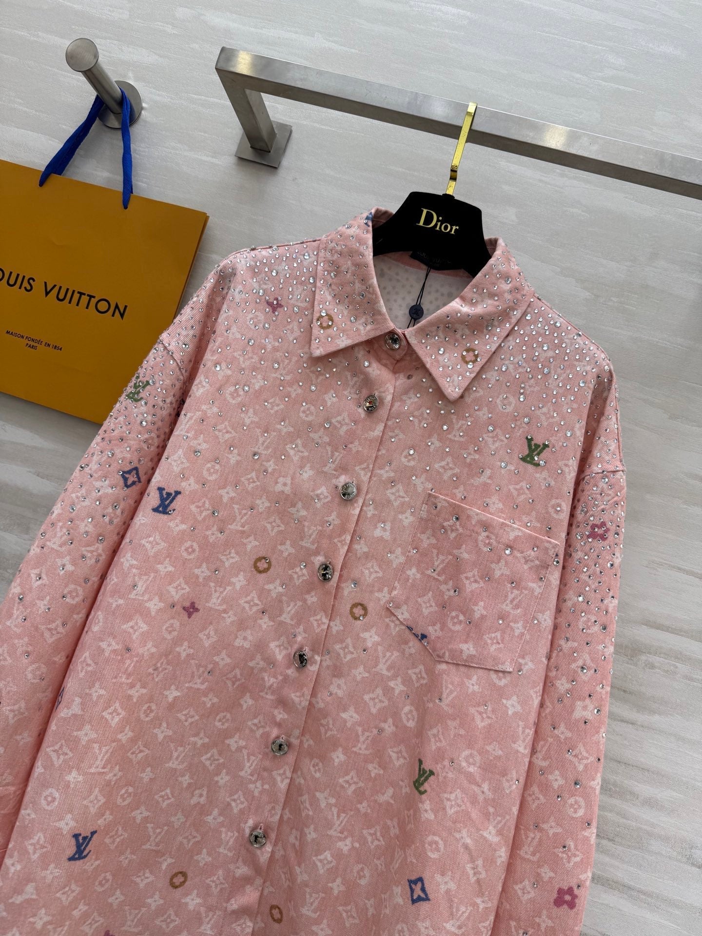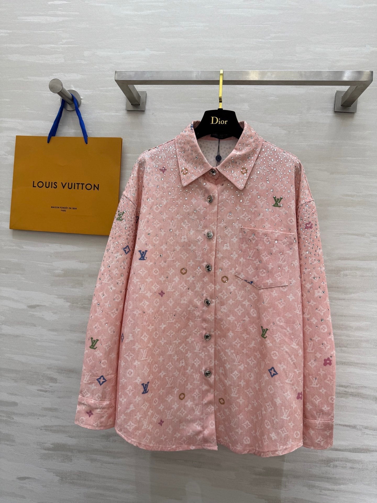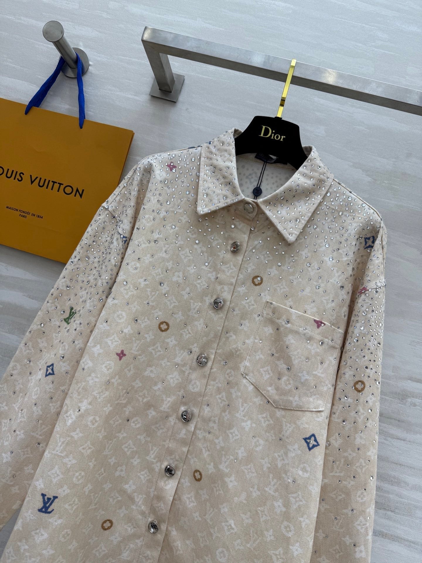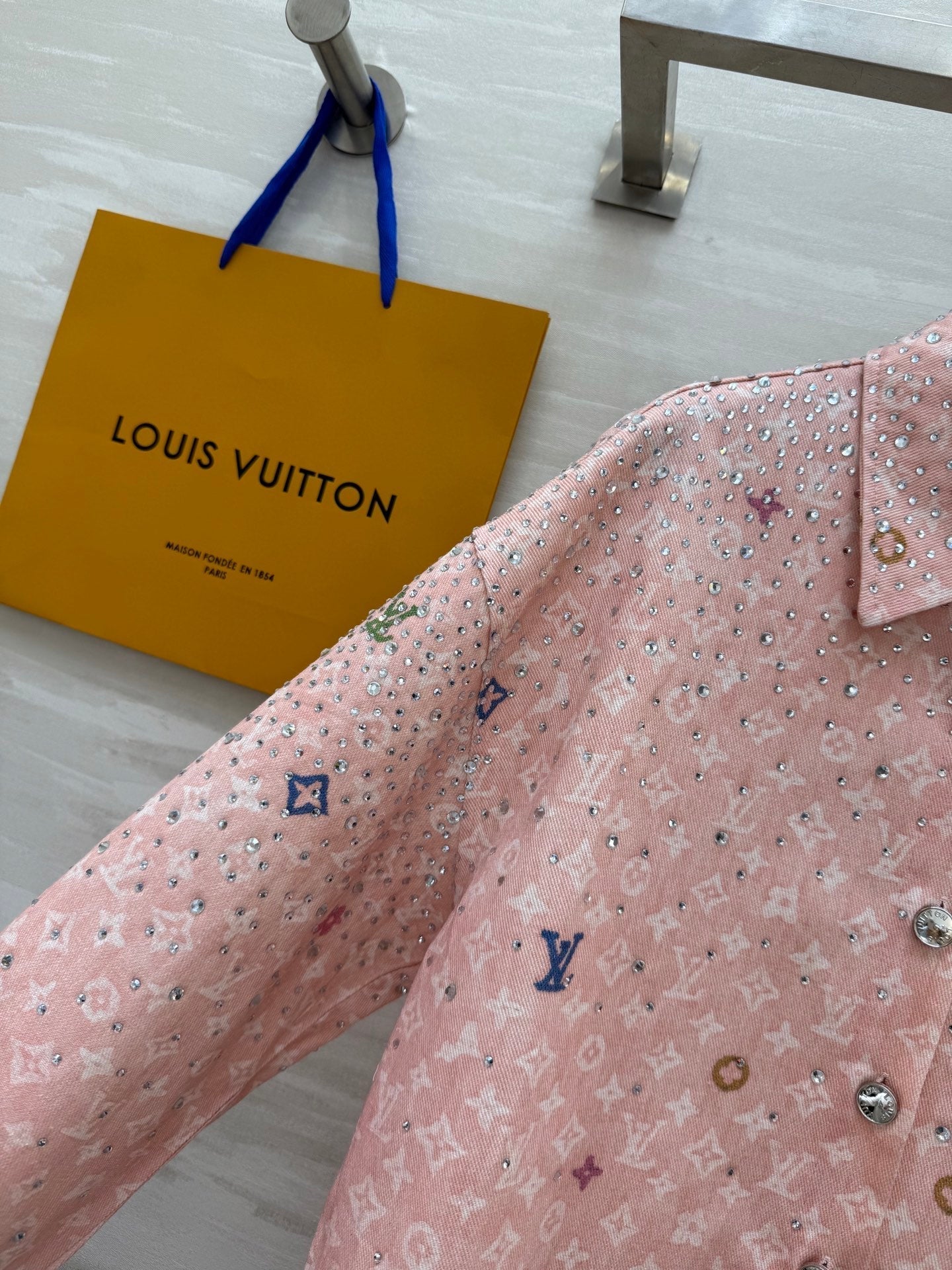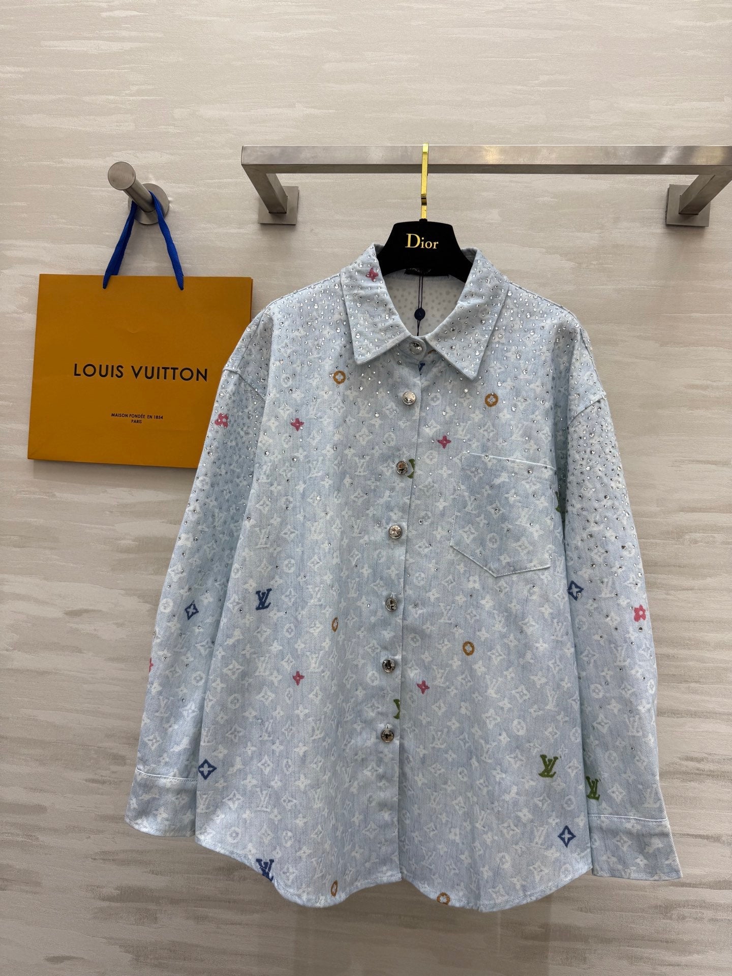 LV 25 Luxurious Advanced Shirt White Blue Polyester