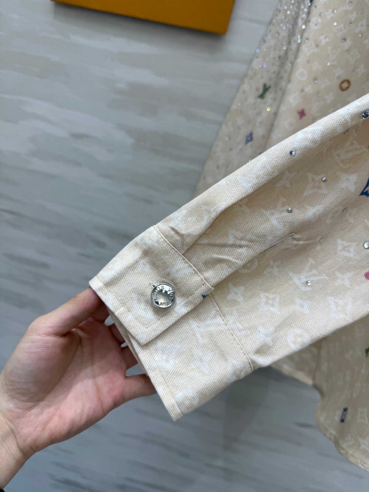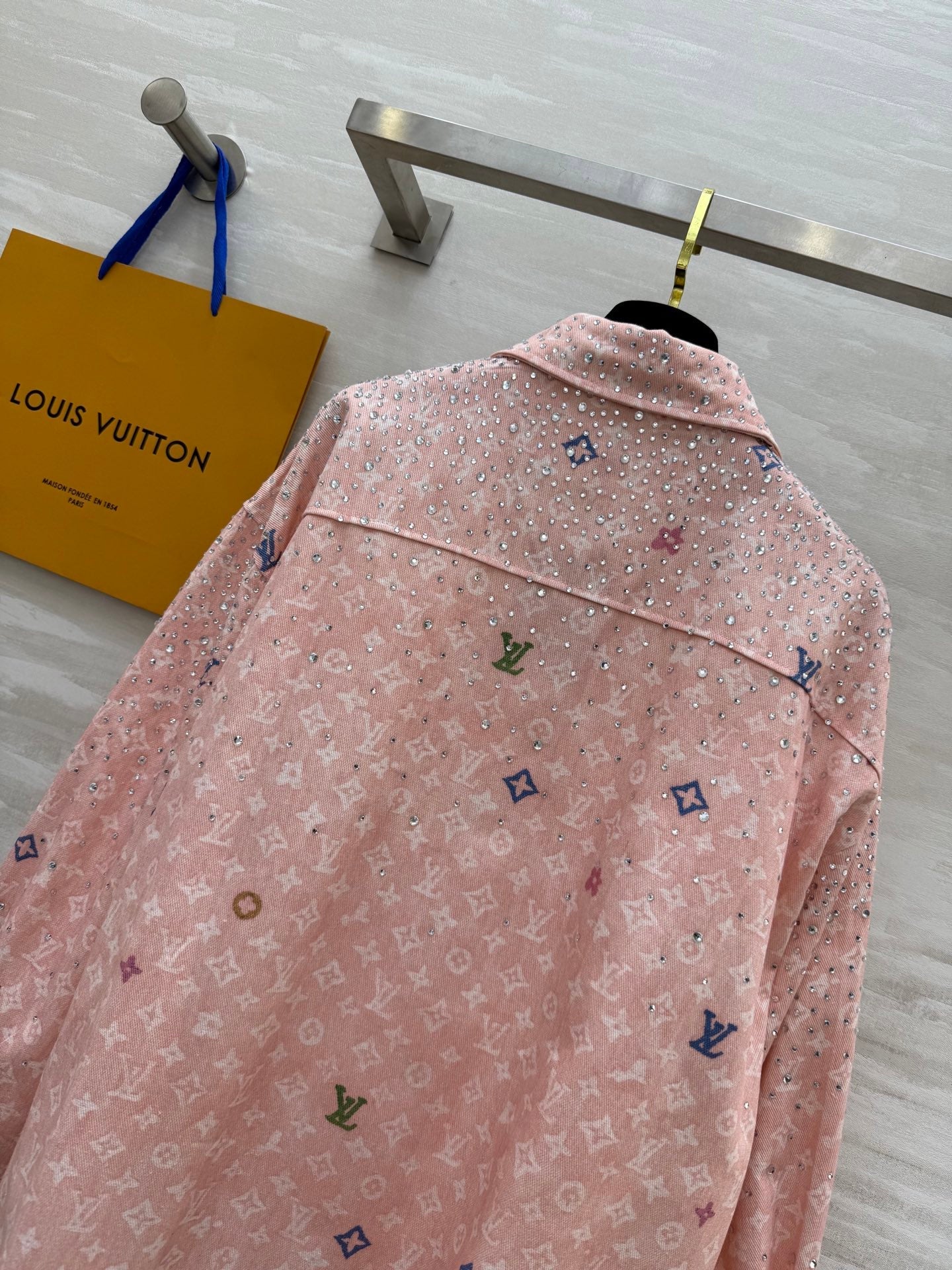 LV 25 Slightly Transparent Flower Shirt Brown Polyester