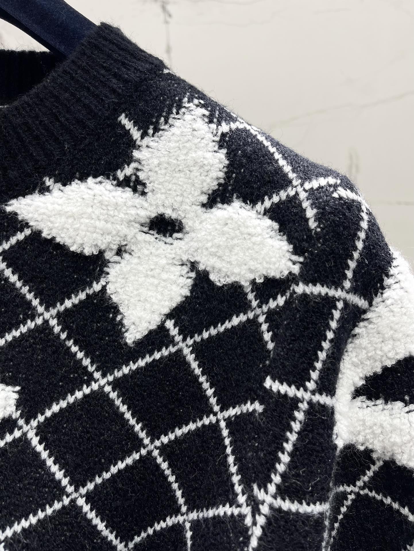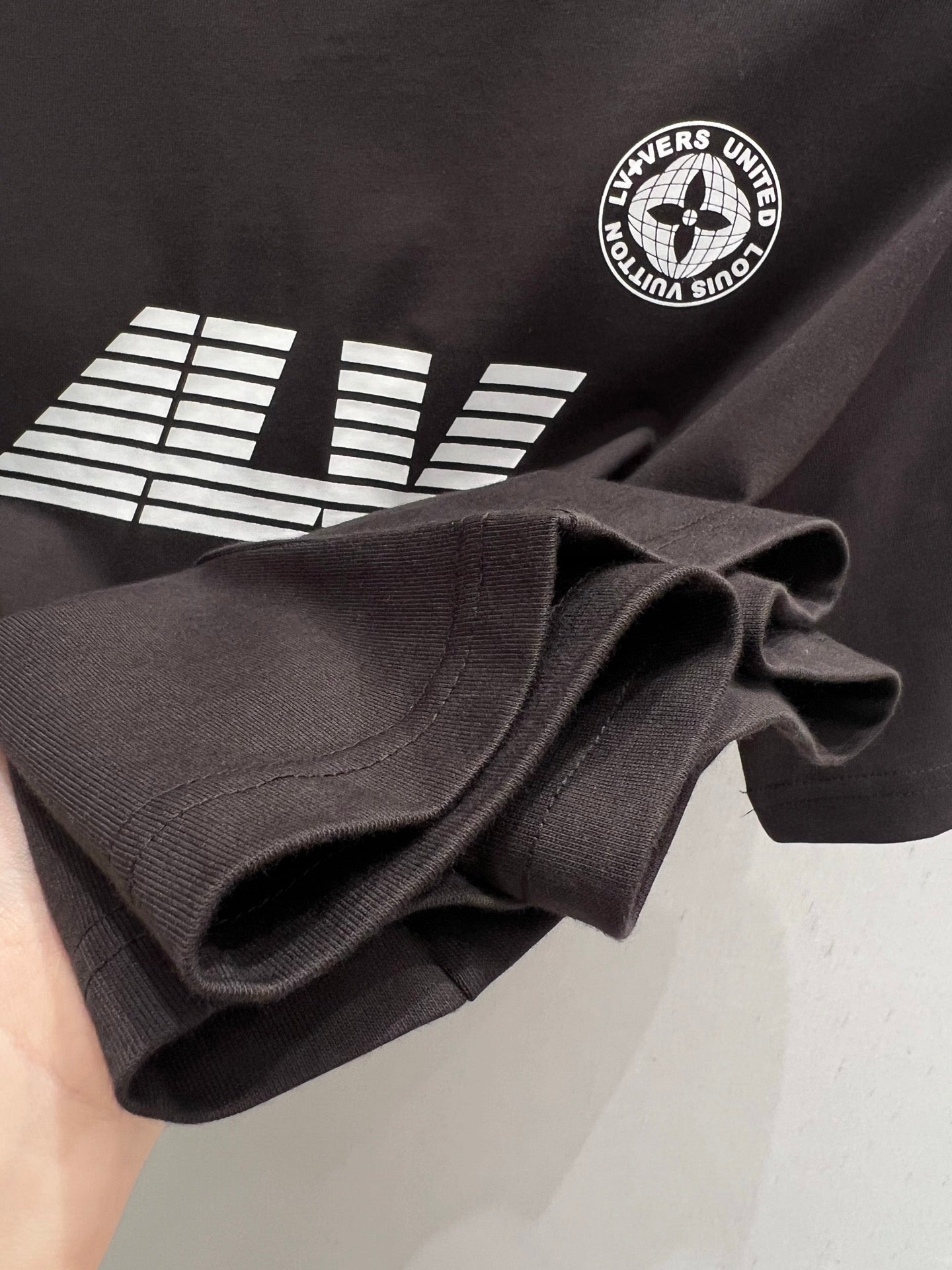 LV 25 Four-Leaf Clover Prints T-shirt Black Cotton
