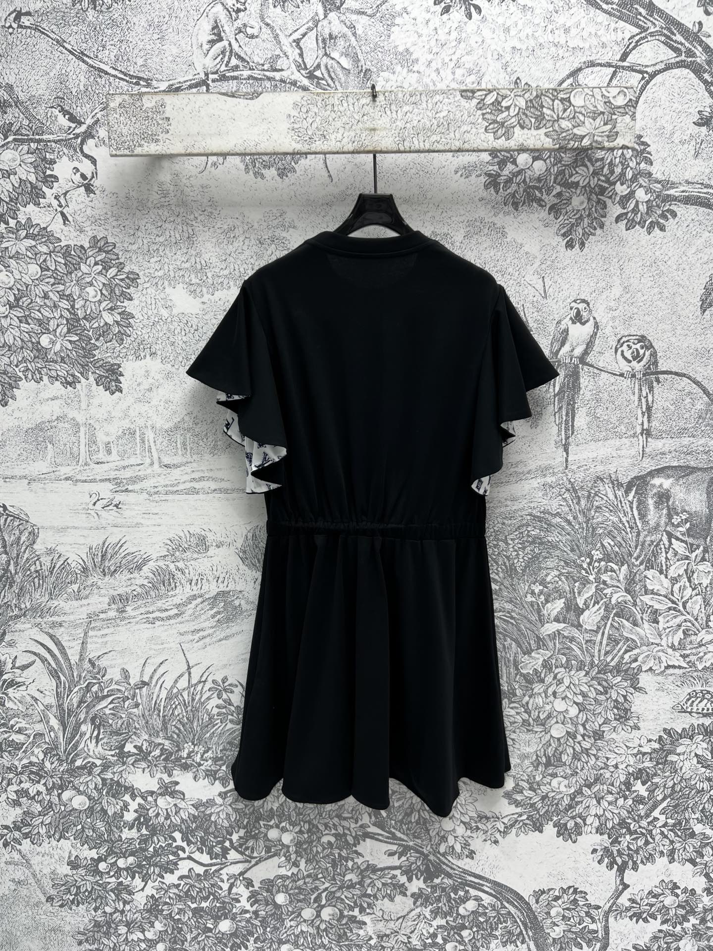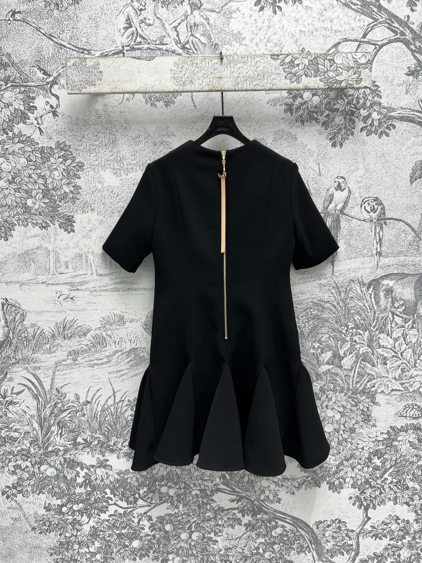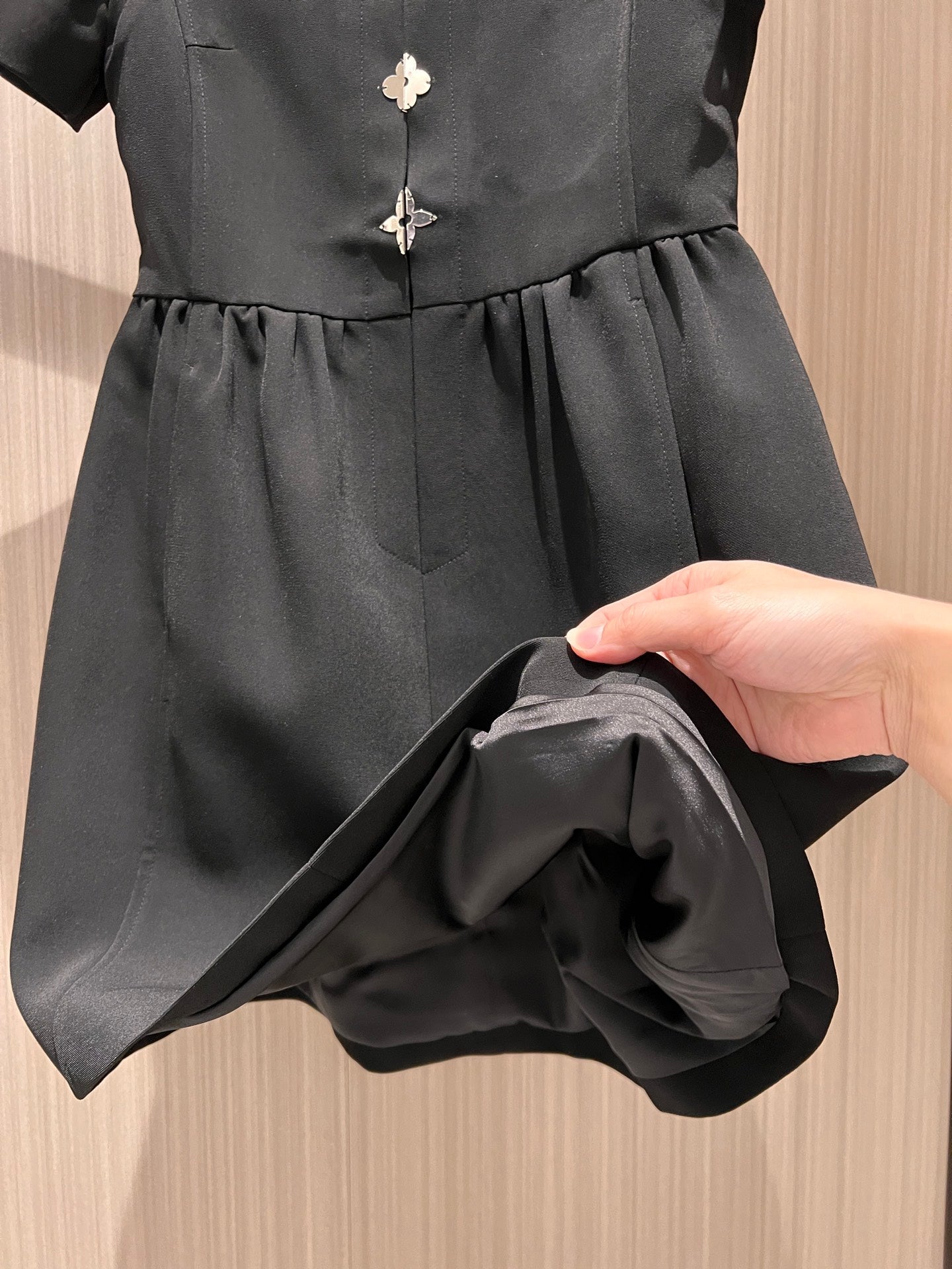 LV 25 Lotus Leaf Short Sleeve Dress Black Cotton