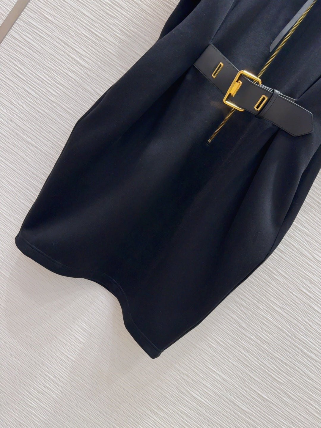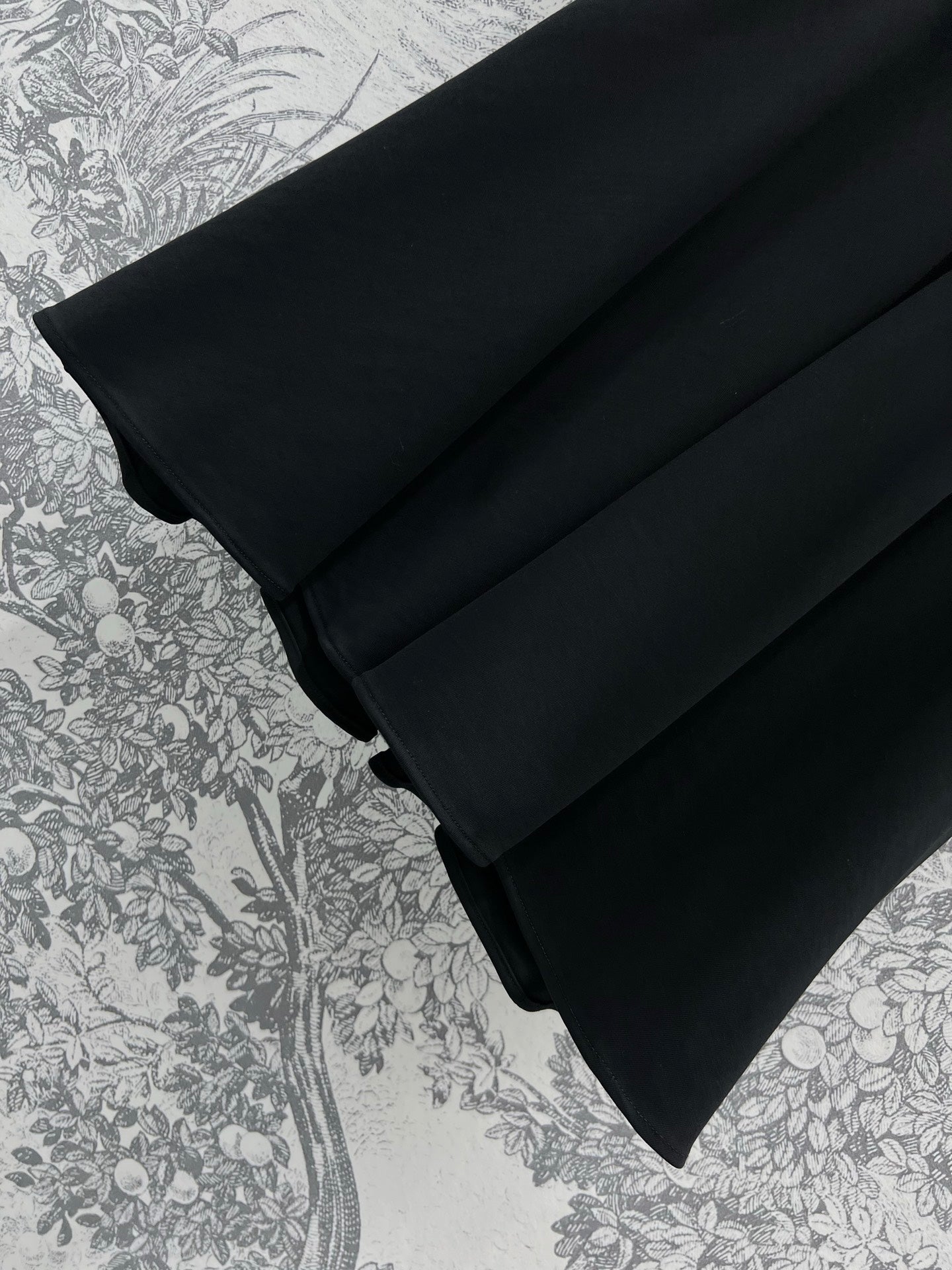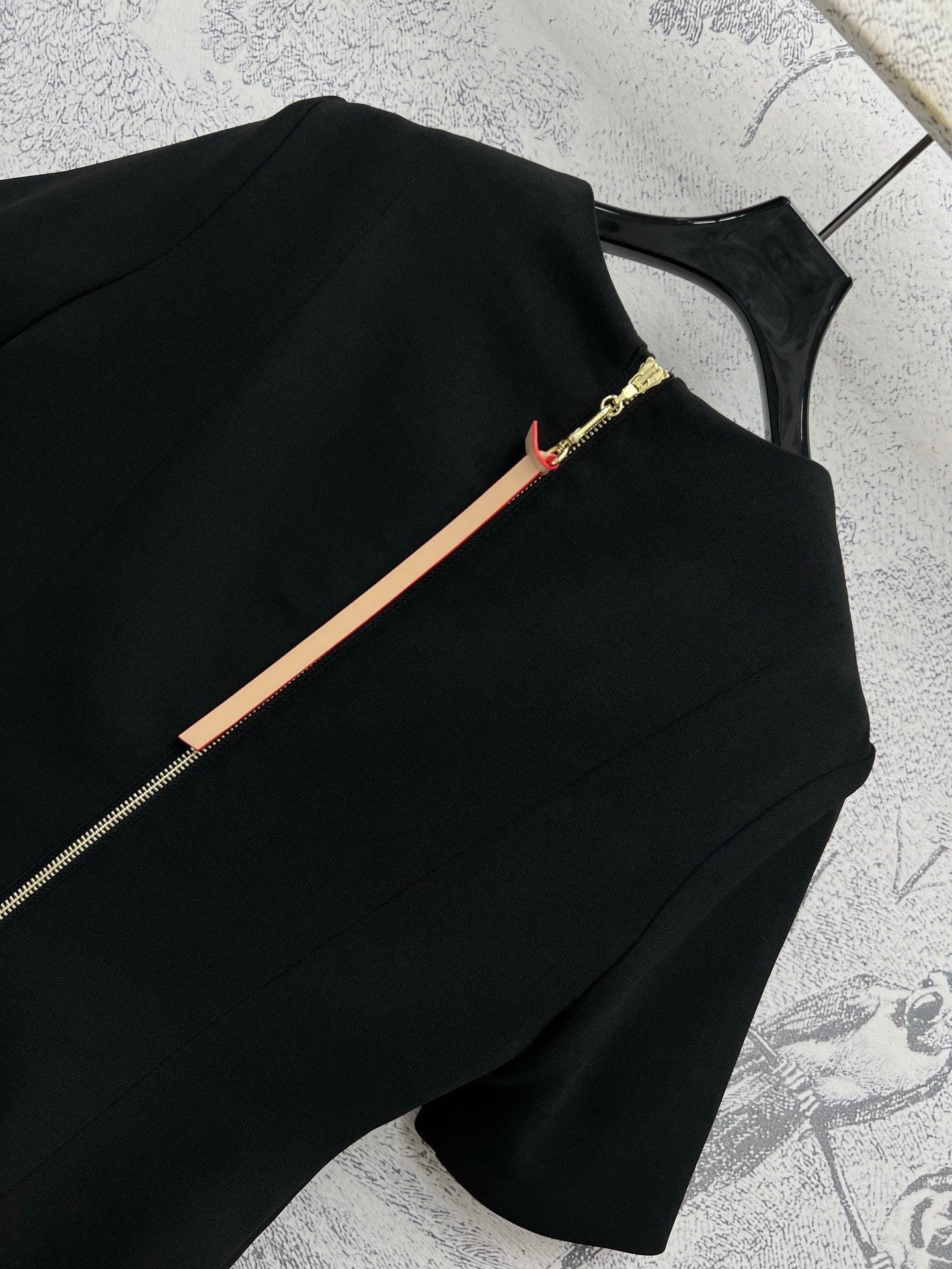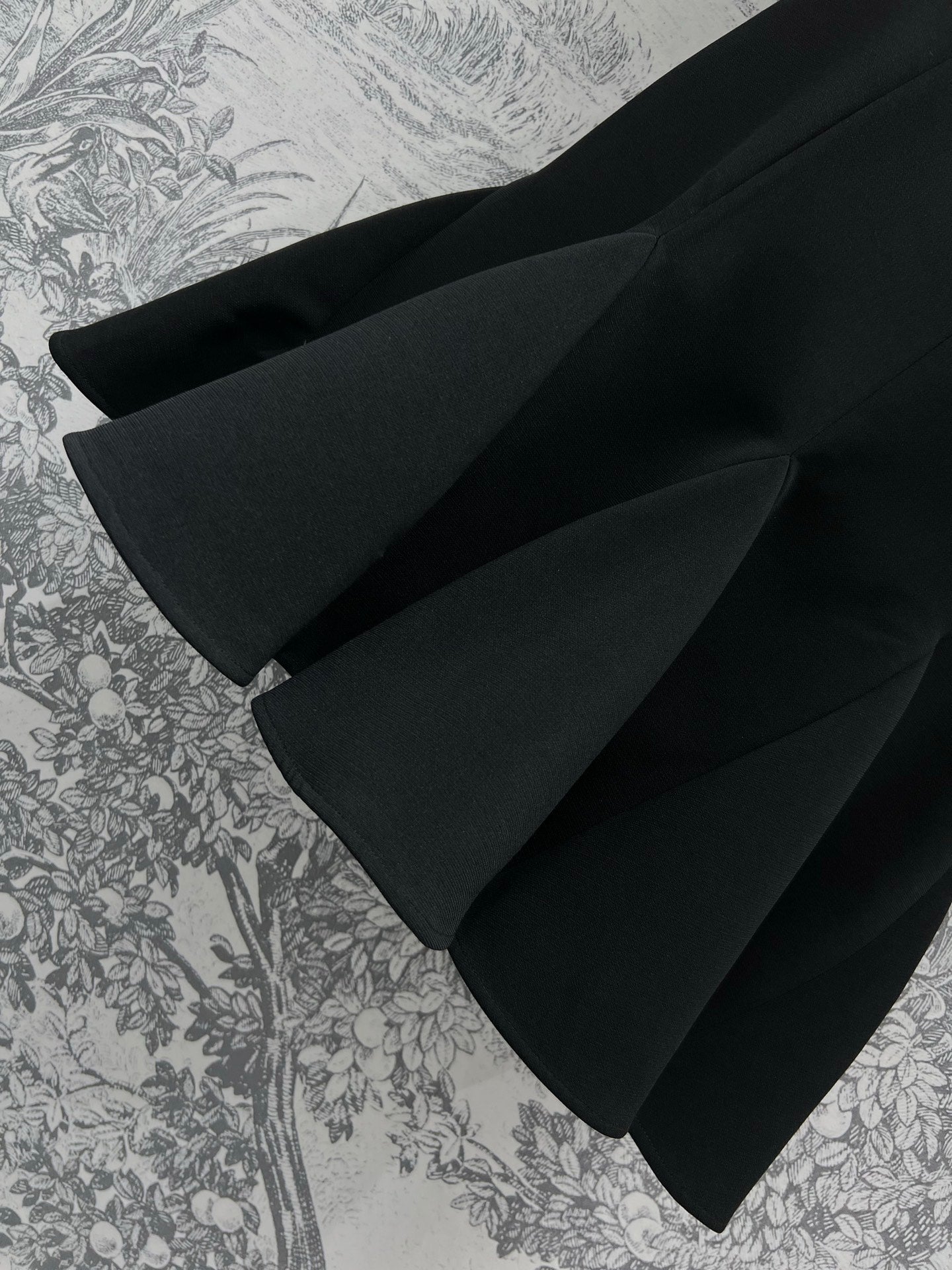 LV 25 Lotus Leaf Short Sleeve Dress Black Cotton