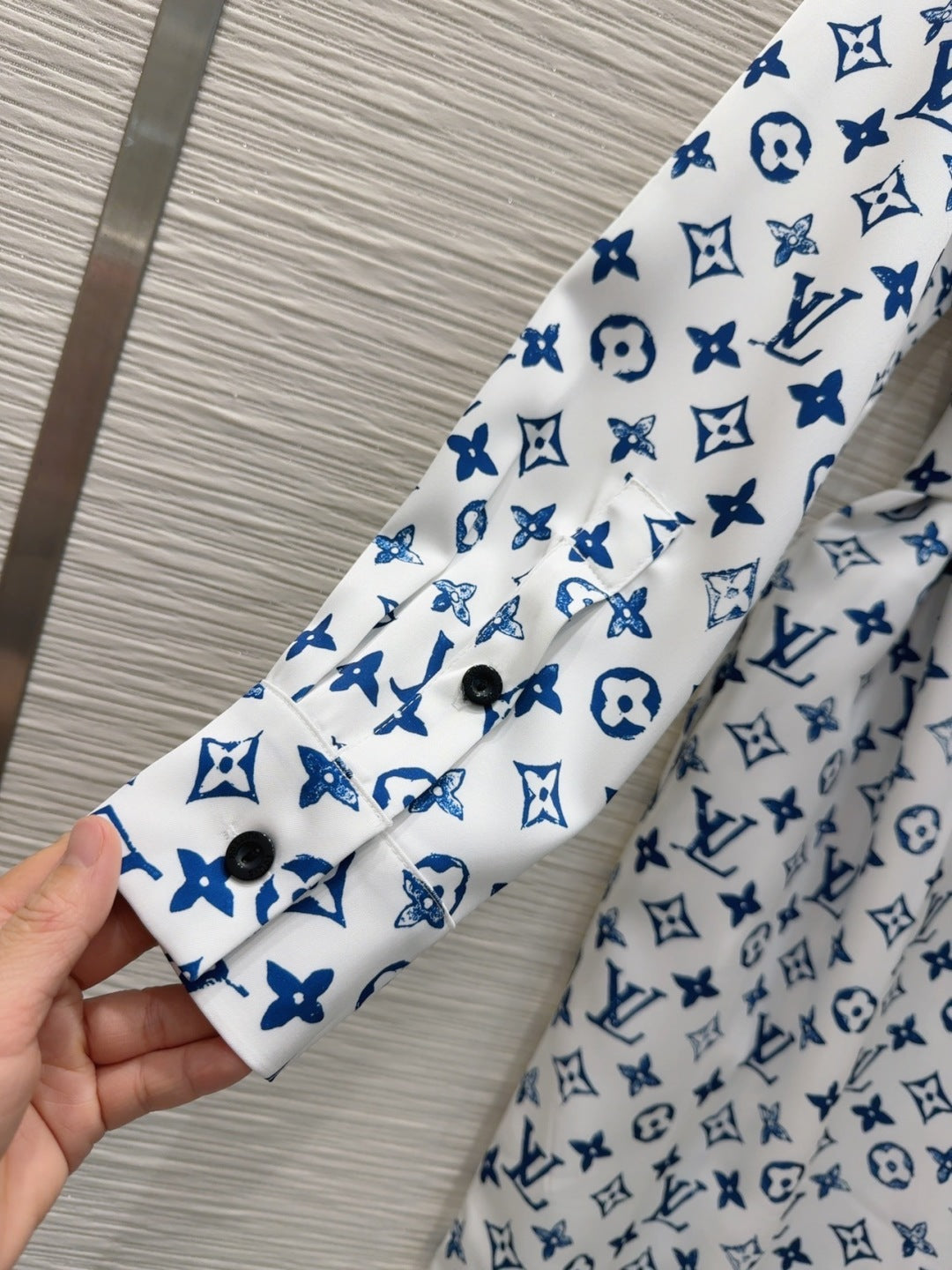 LV 25 Long Sleeve Mandarin Collar Shirt White Cotton