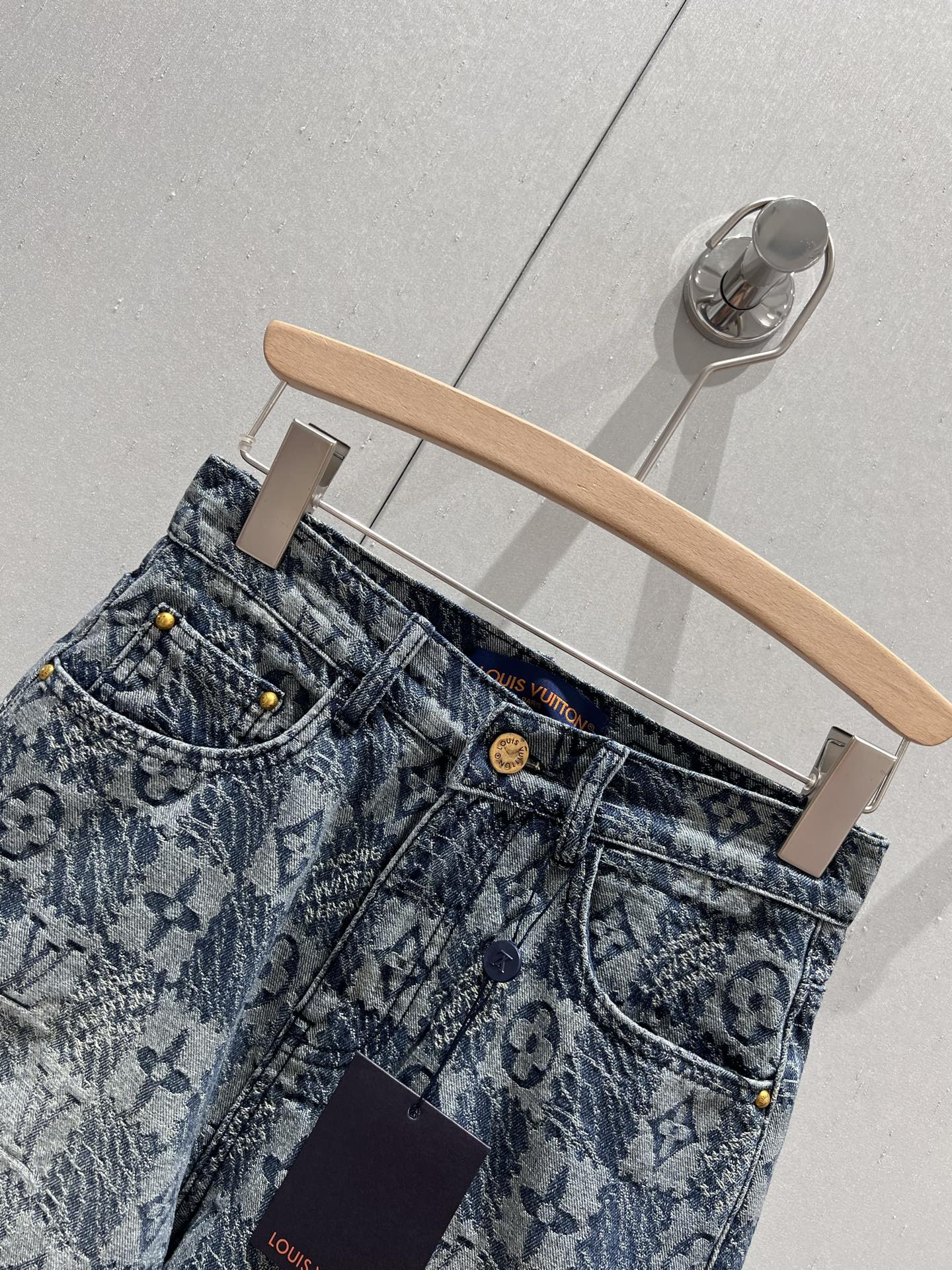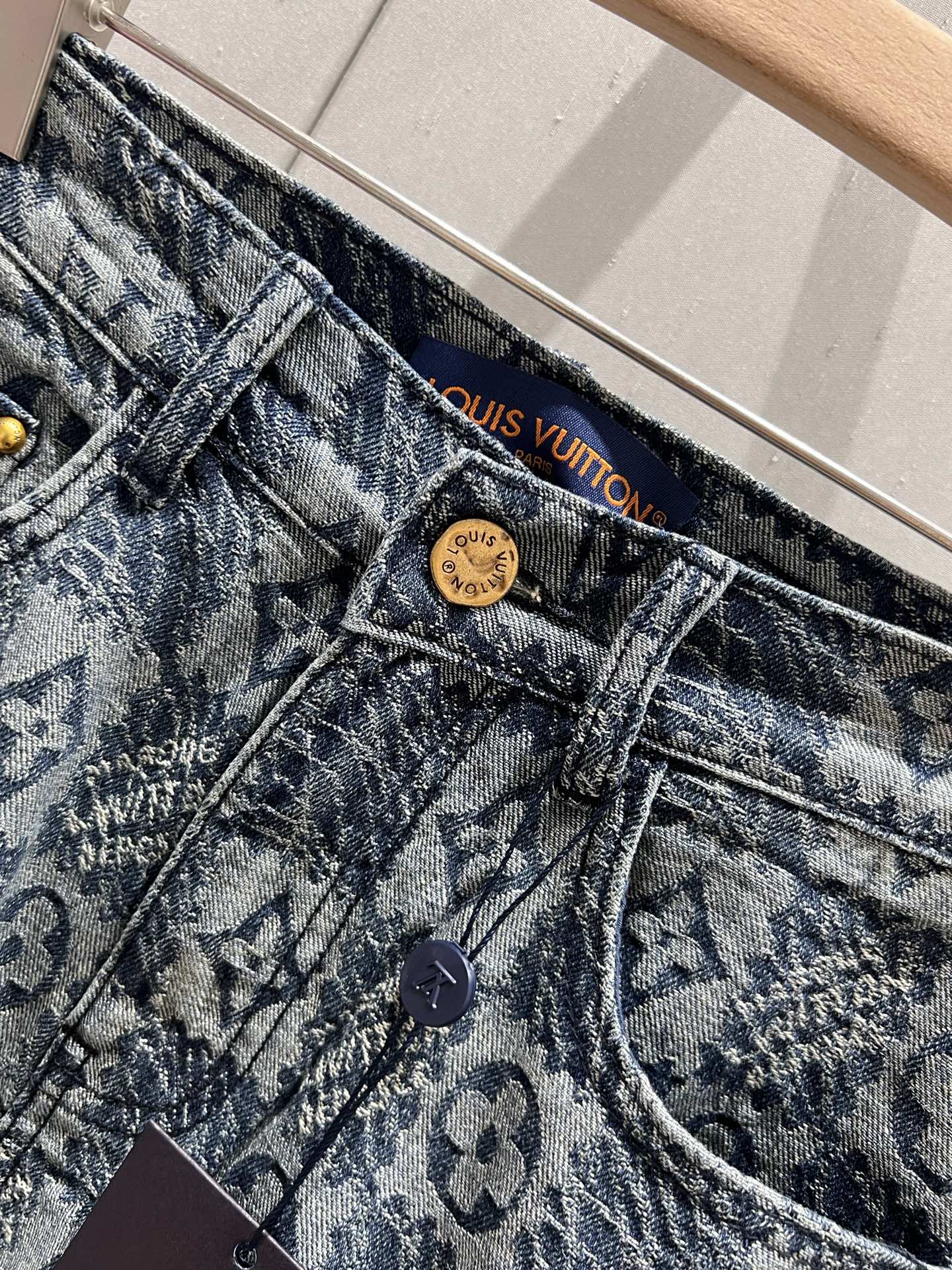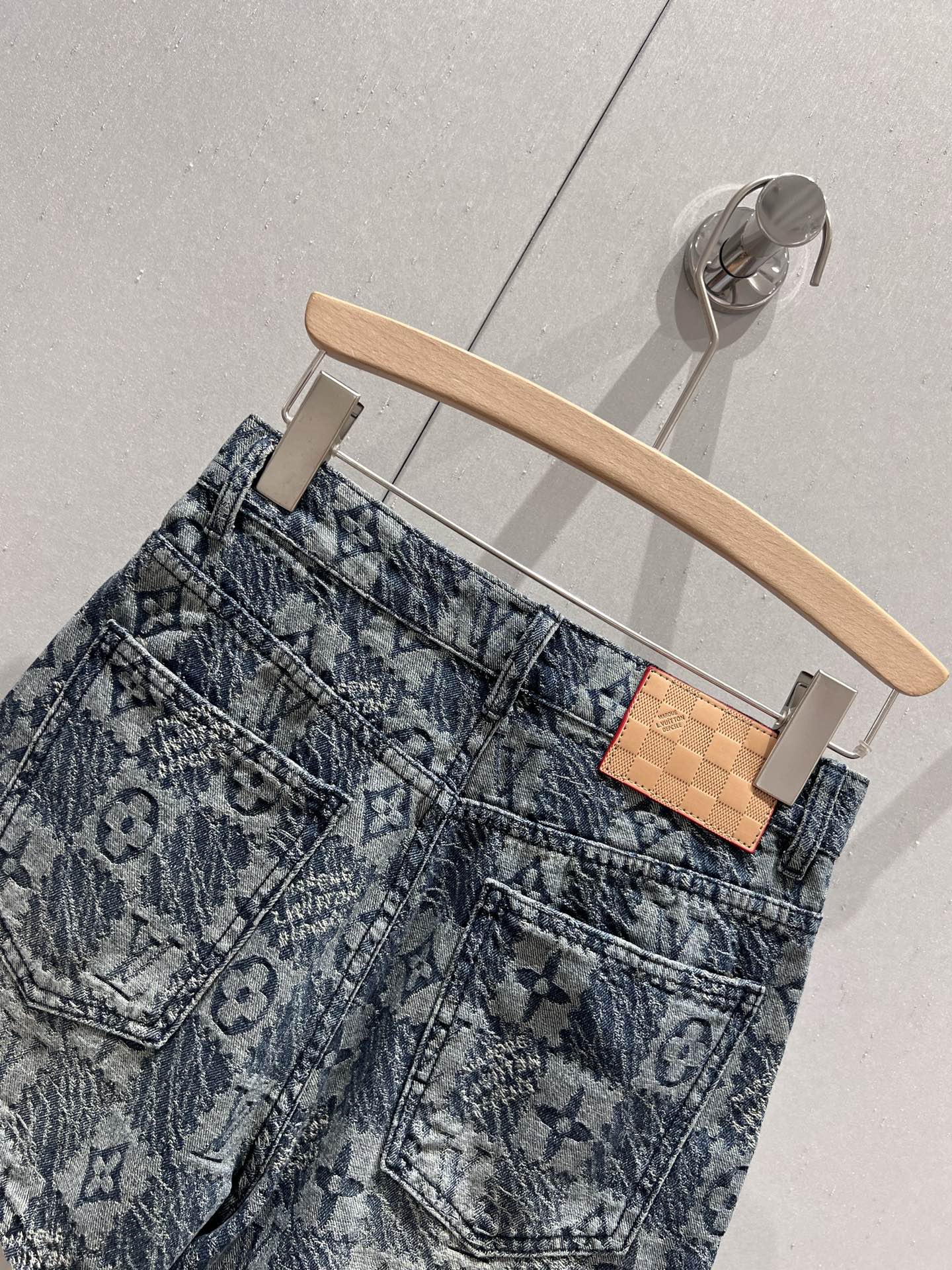 LV 25 Jacquard Logo Denim Trousers Black Cotton