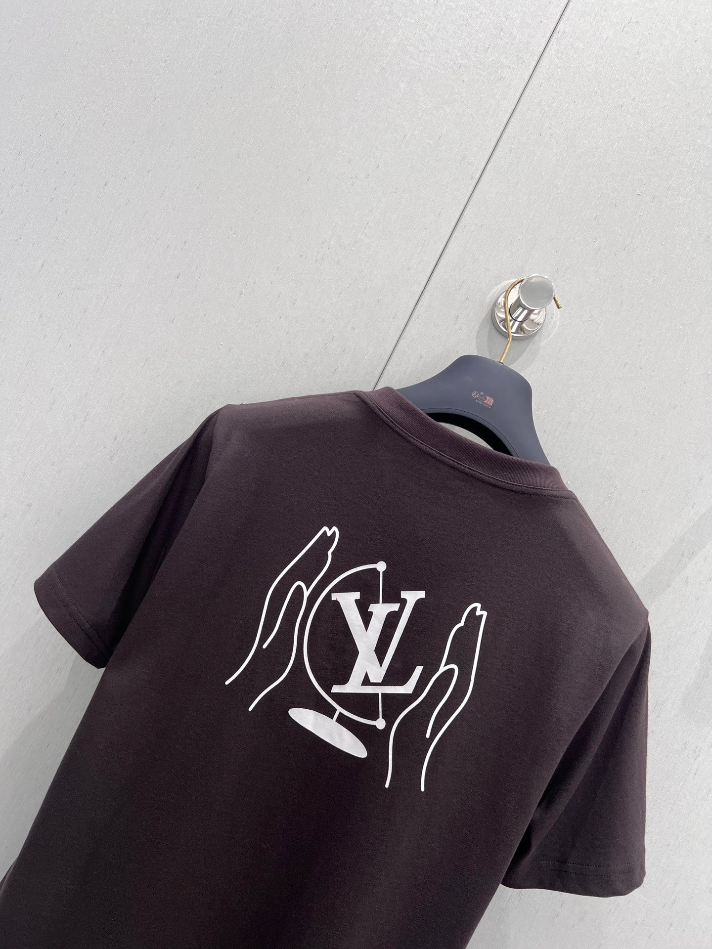 LV 25 Neck Short-Sleeved T-shirt Brown Cotton 212817