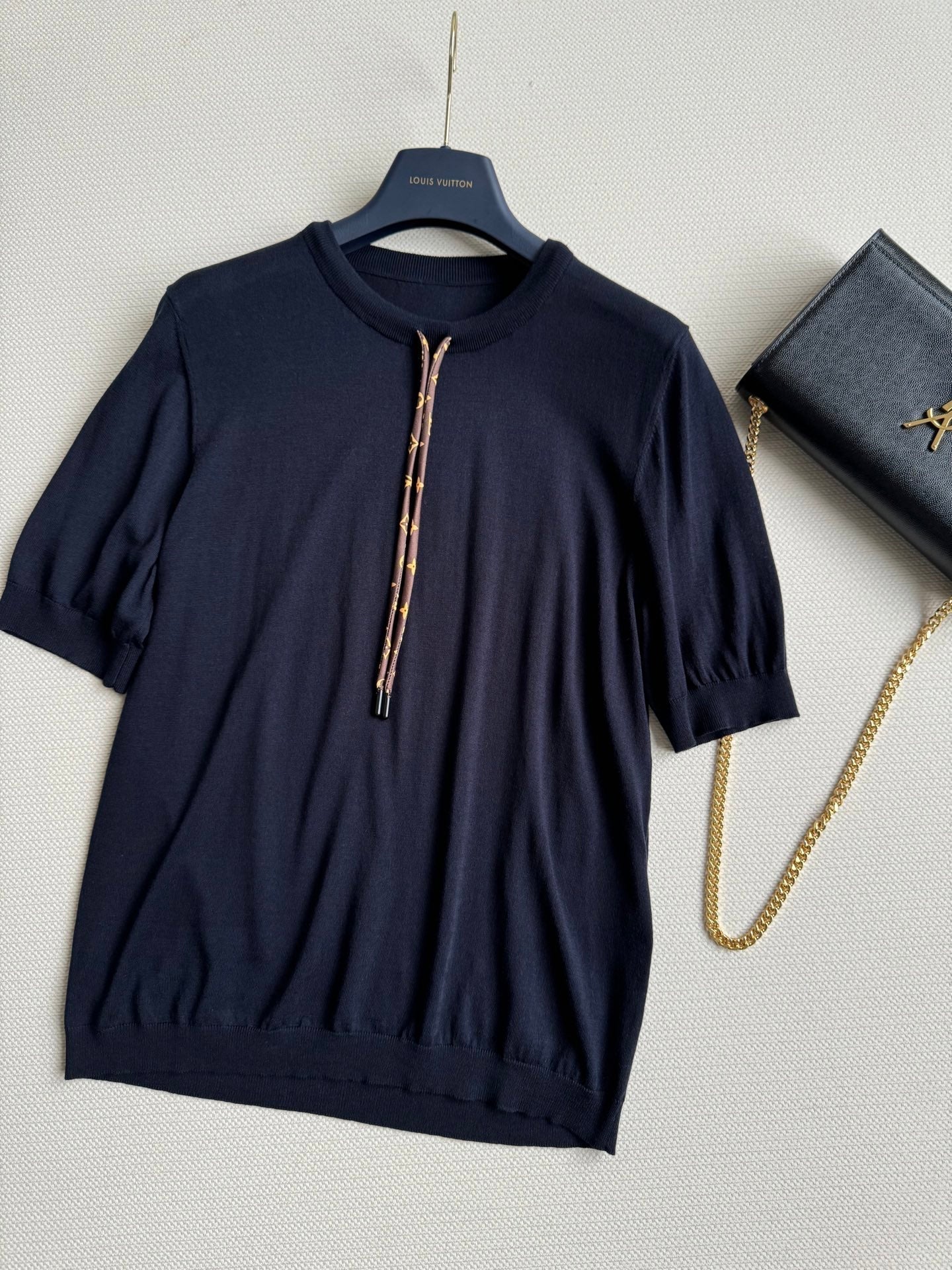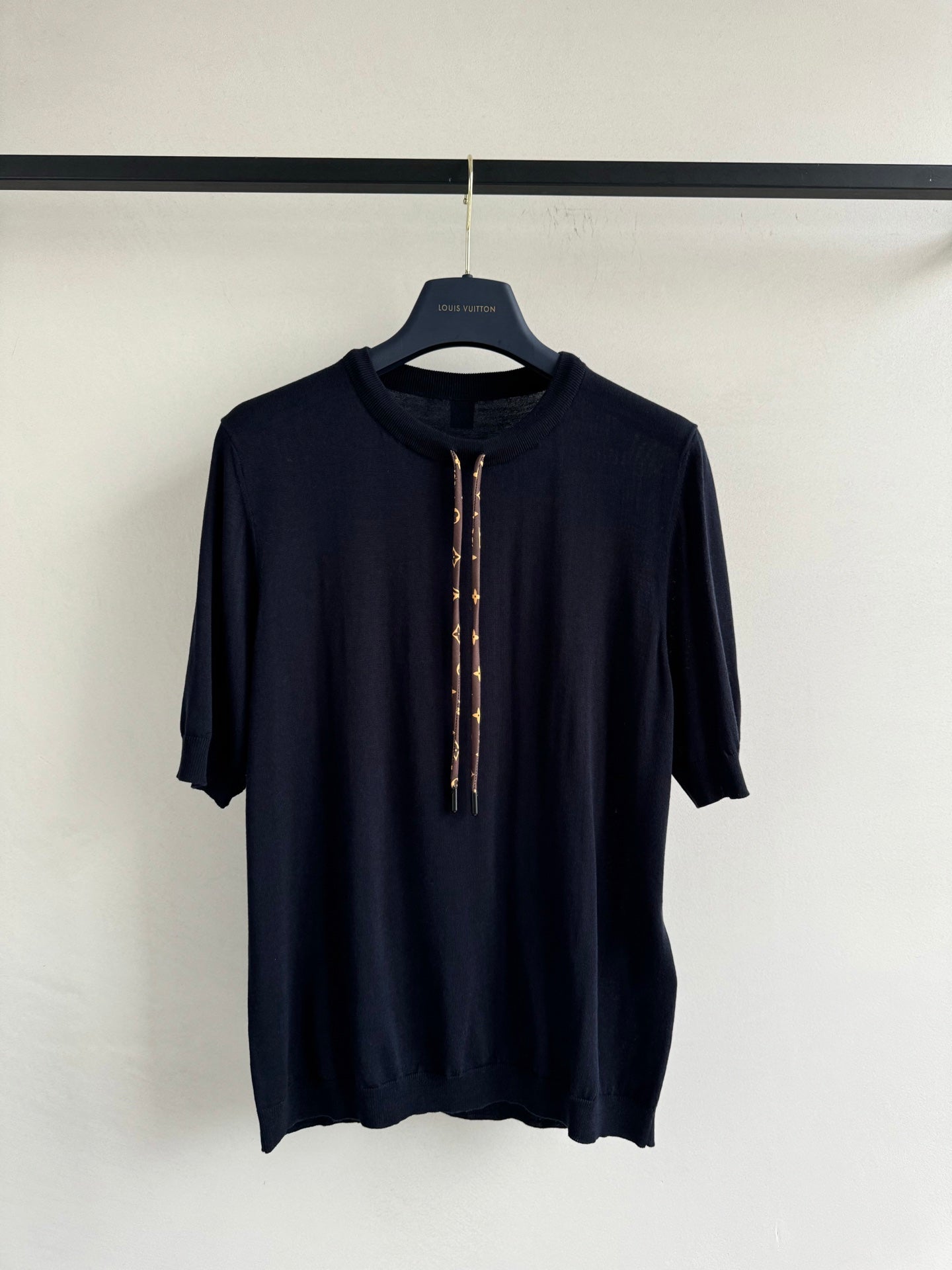 LV 25 Pleated Waist Round Neck Shirt Black Cotton