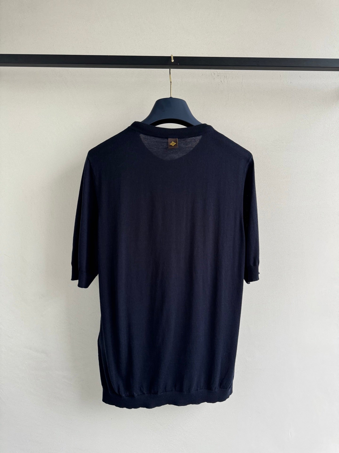 LV 25 Monogram Jacquard Logo Denim T-shirt Black Cotton