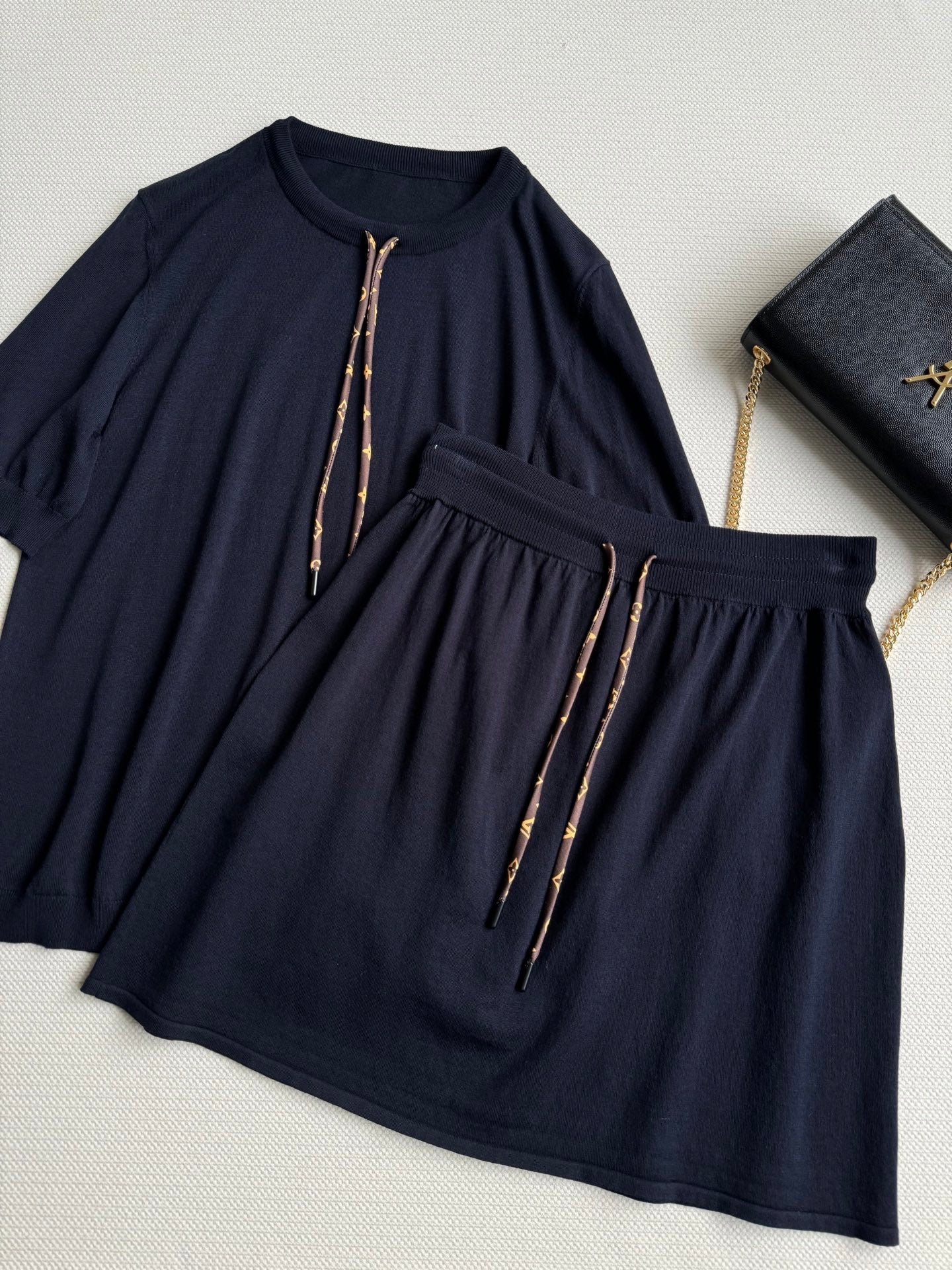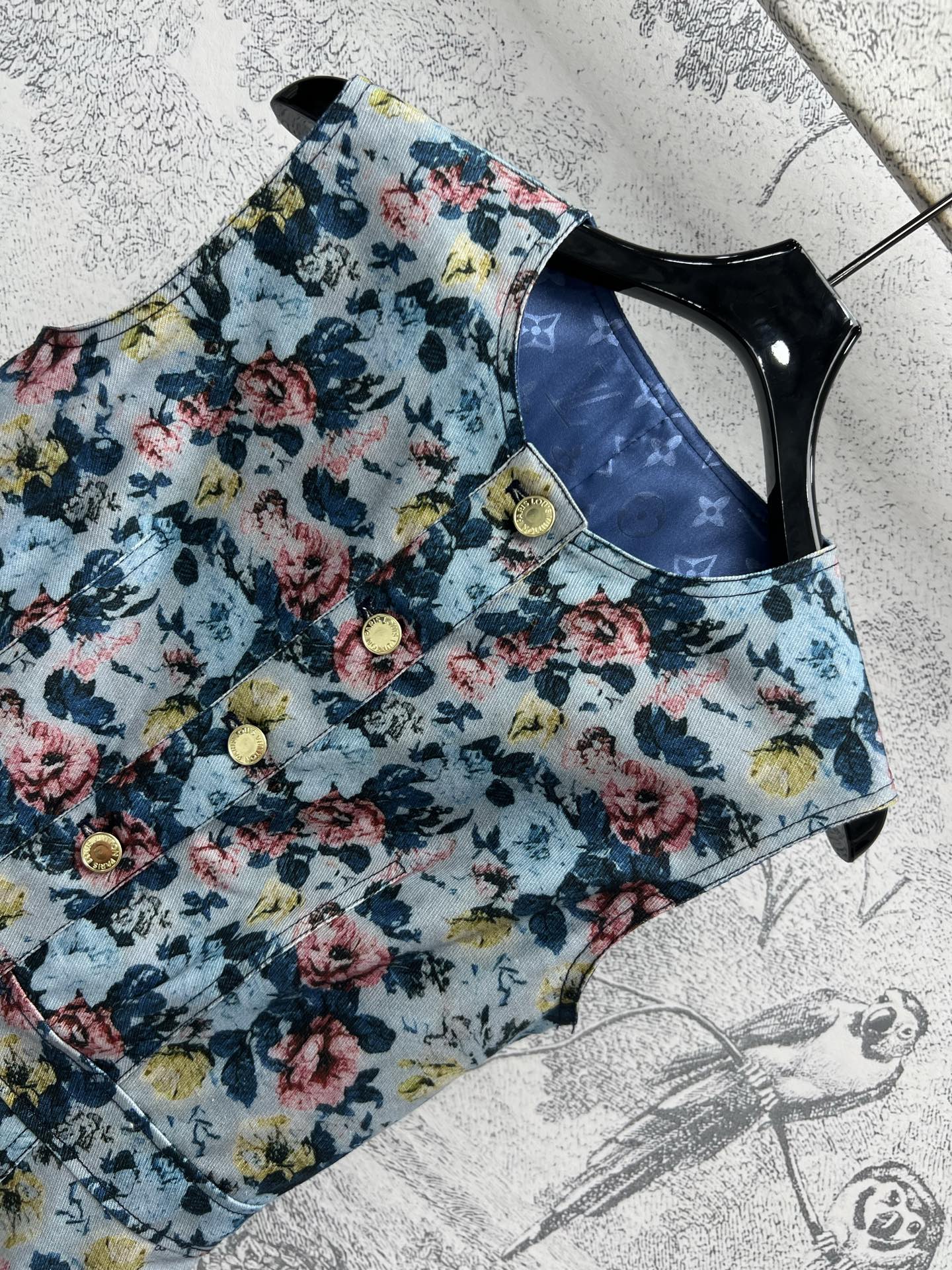 LV 25 Skirt Suit Series Personality Denim Blue Cotton
