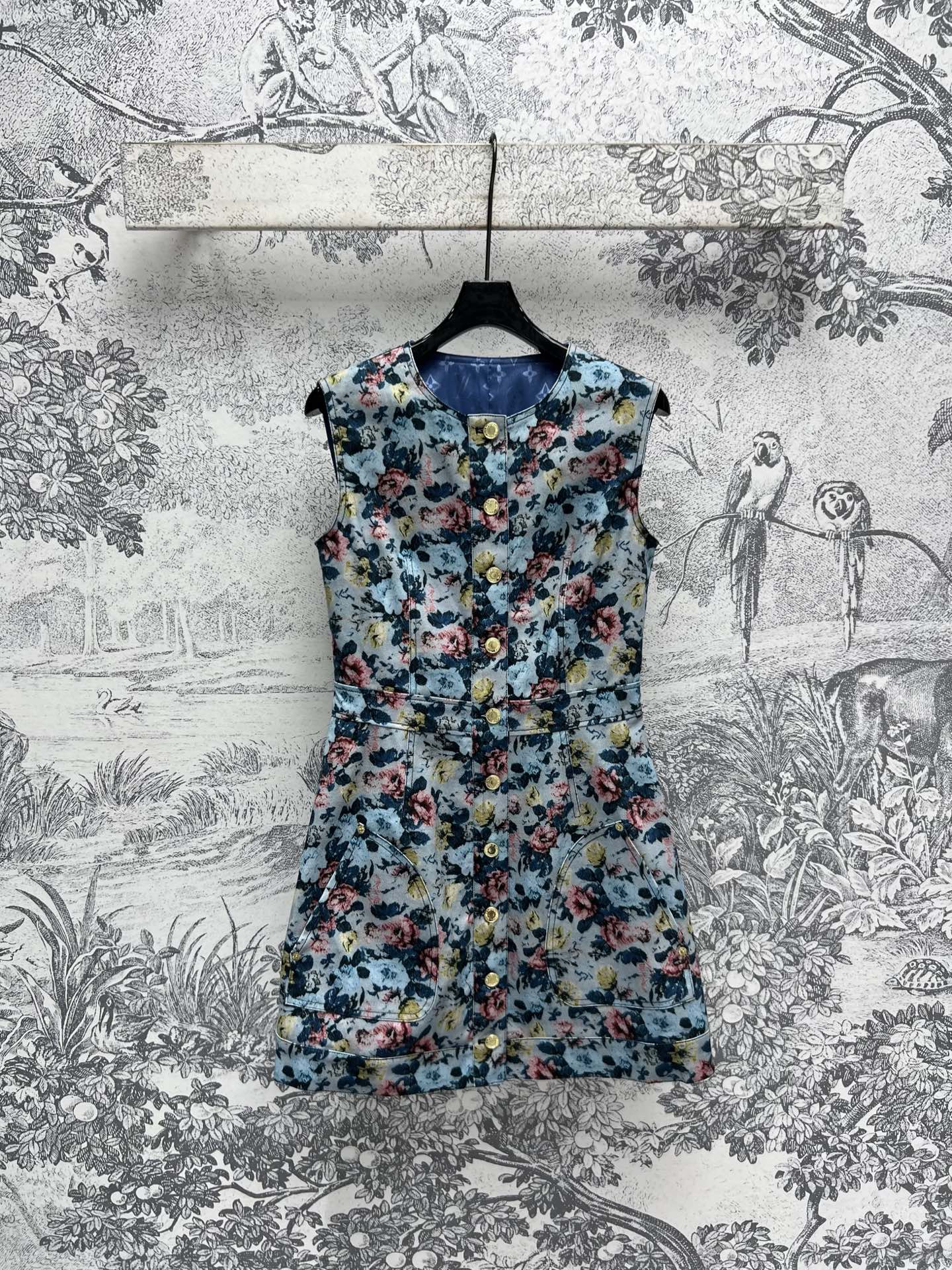 LV 25 Vest Dress Blue Mix Yellow Cotton
