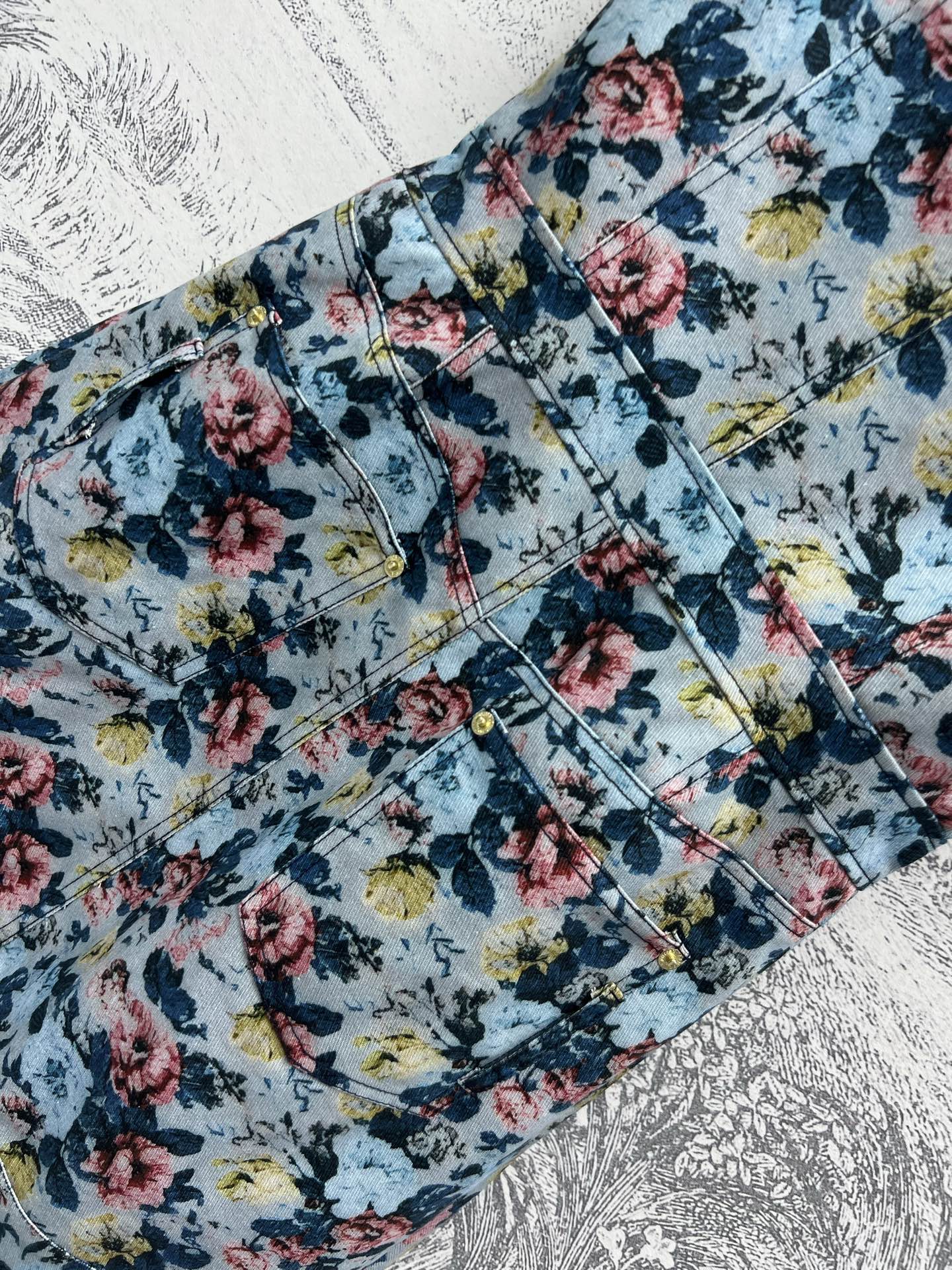 LV Flower Leather Label Straight Jeans Blue Cotton