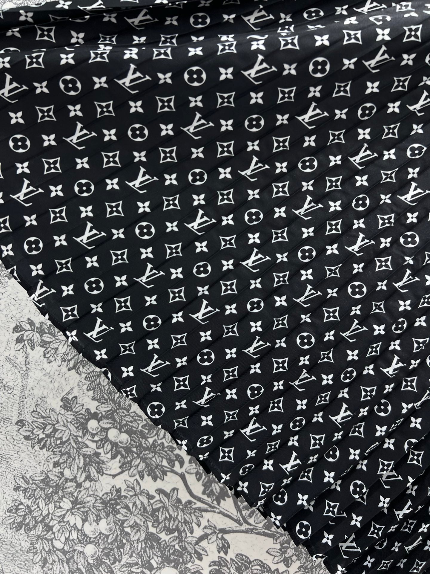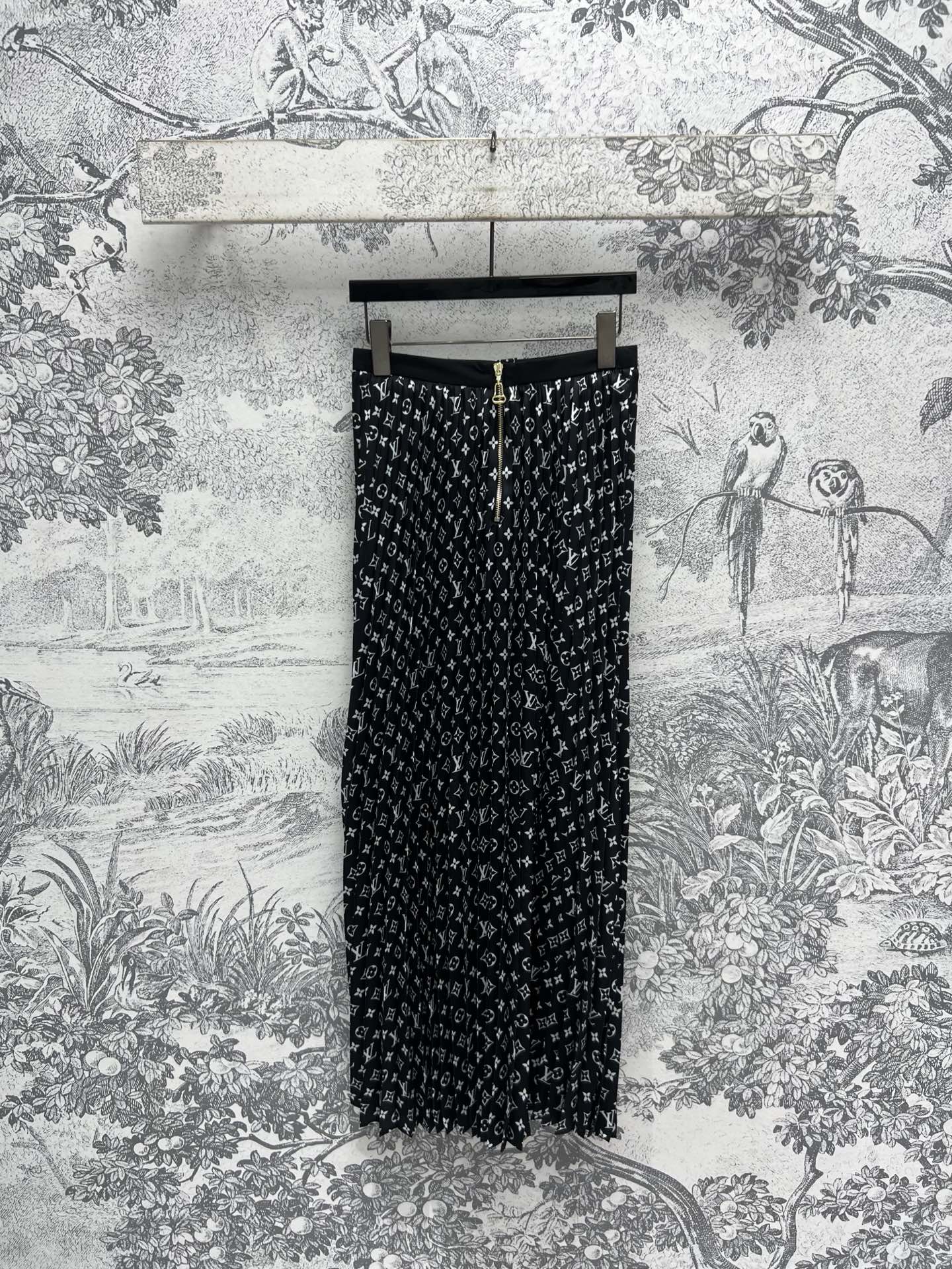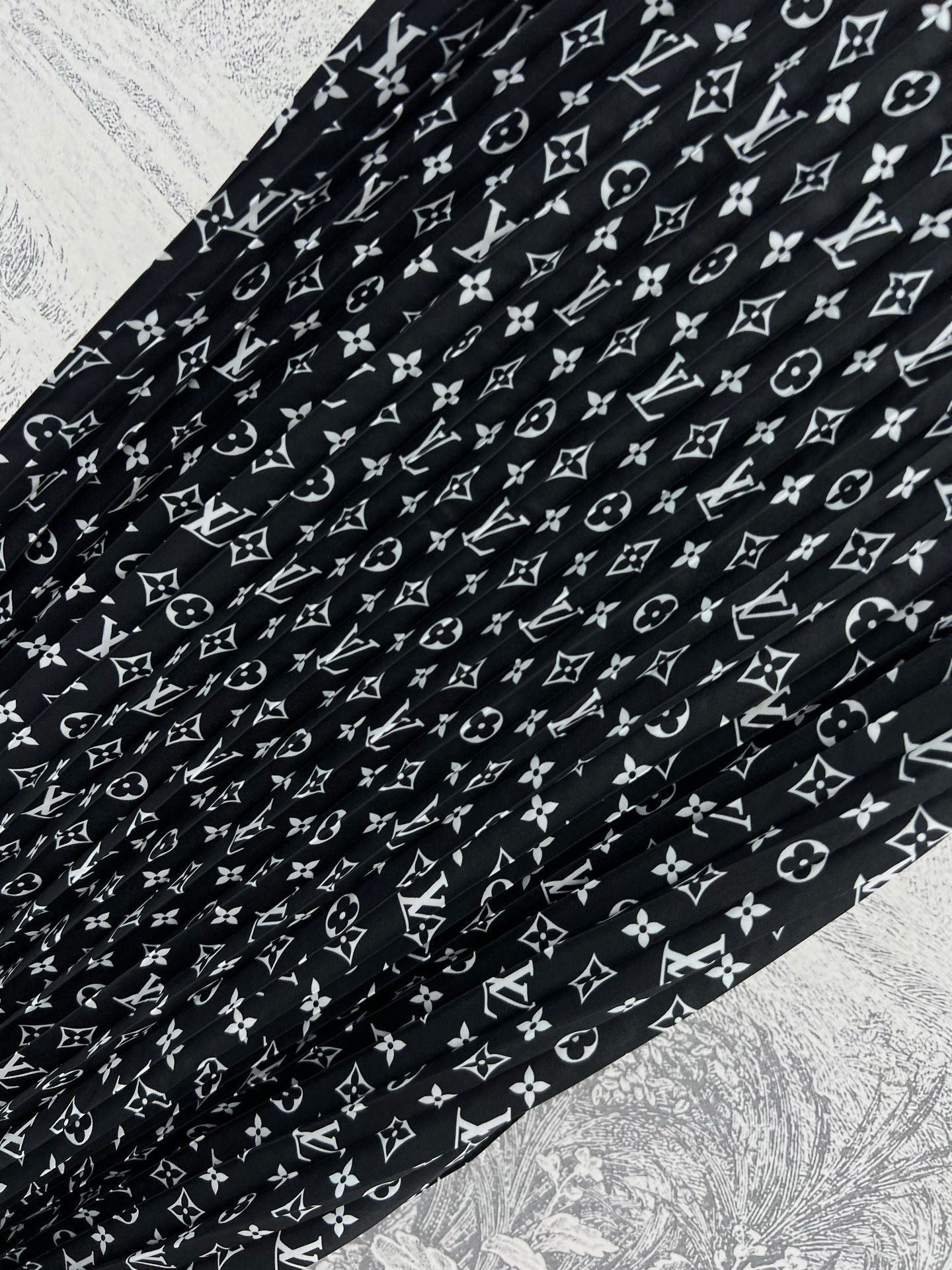 LV 25 Monogram Jacquard Logo Denim Skirt Black Cotton