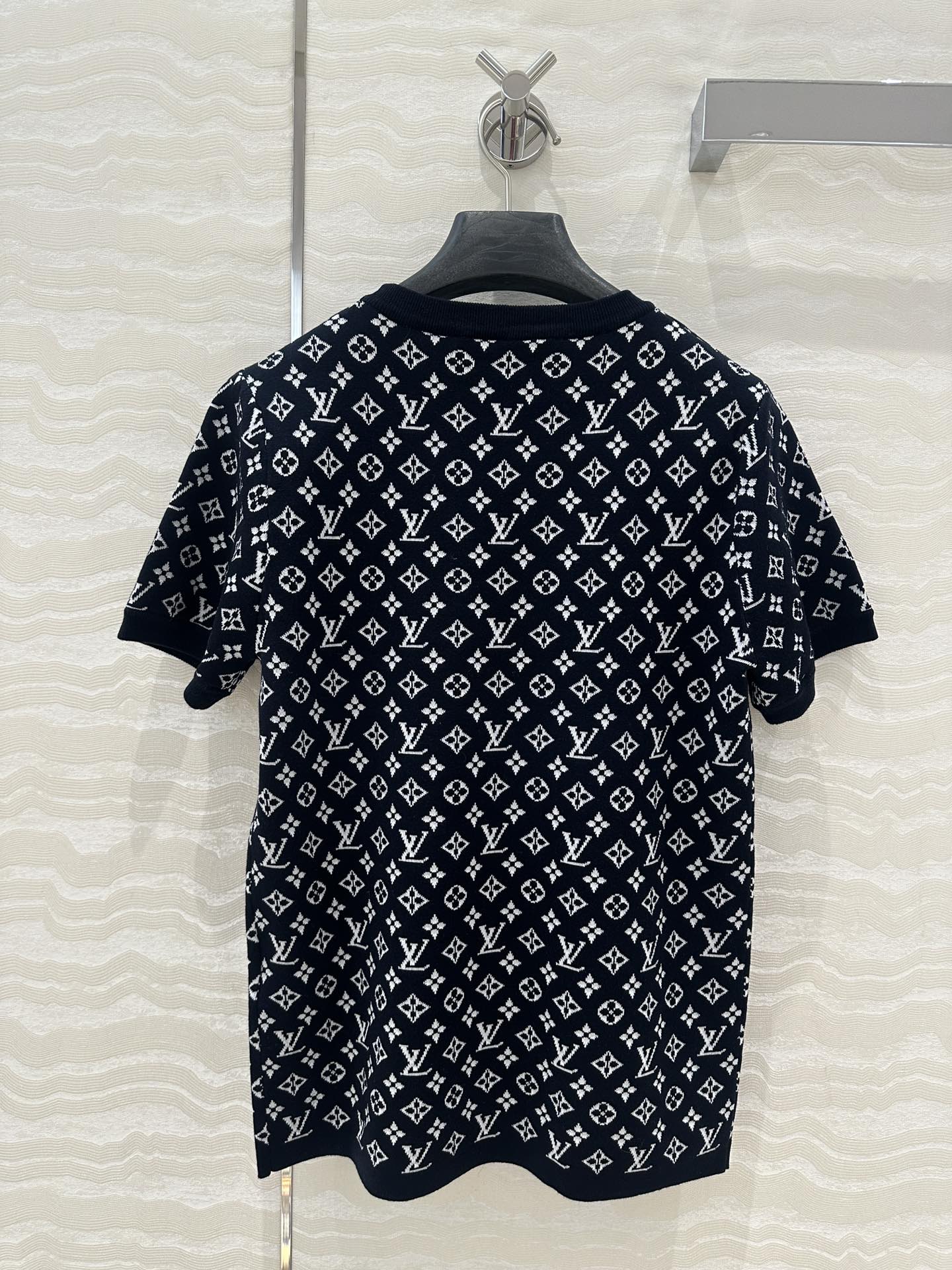 LV 25 Knitted Short-Sleeved Top Blue Wool
