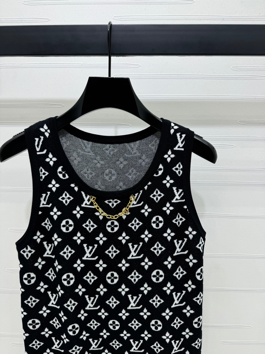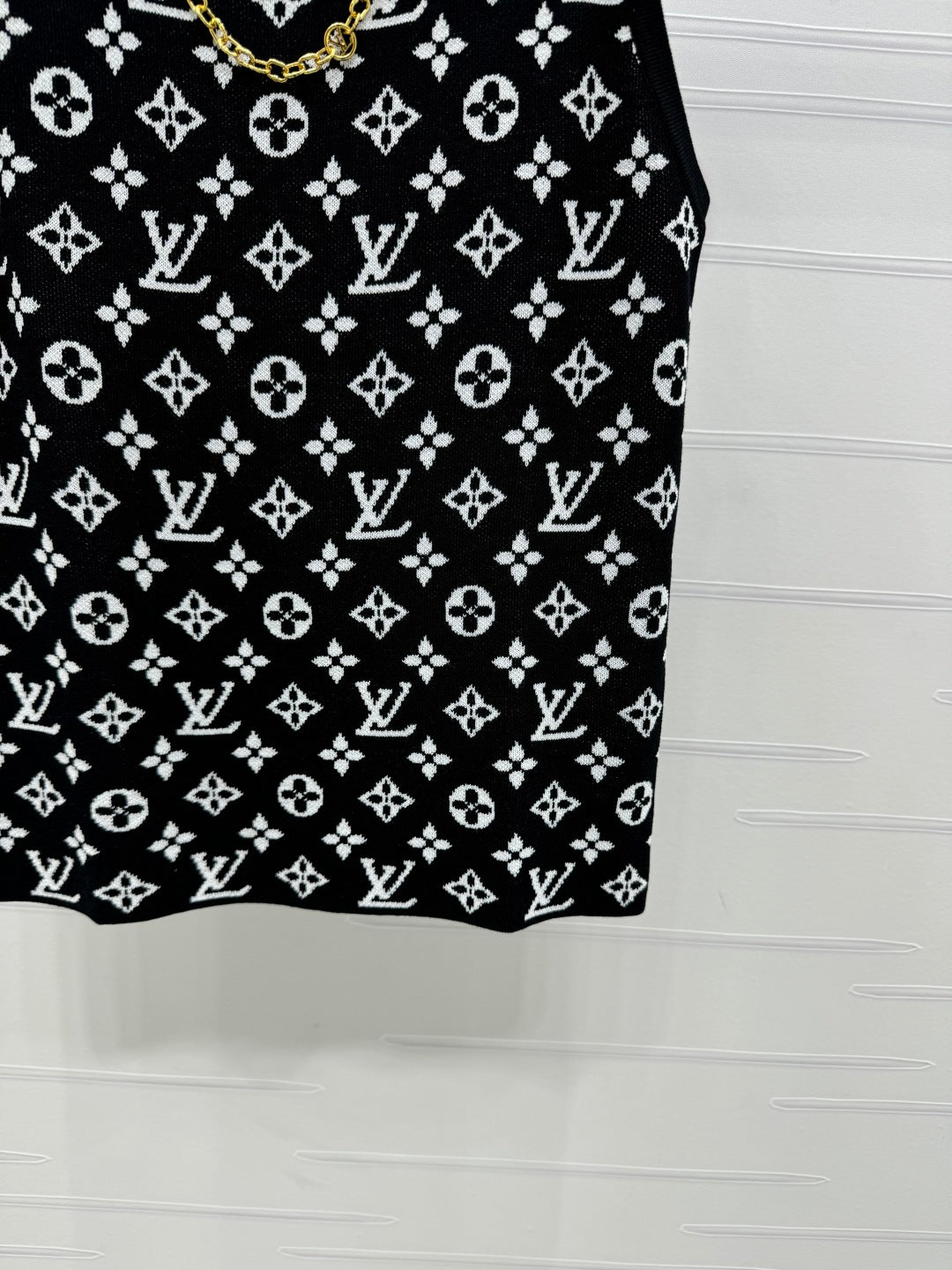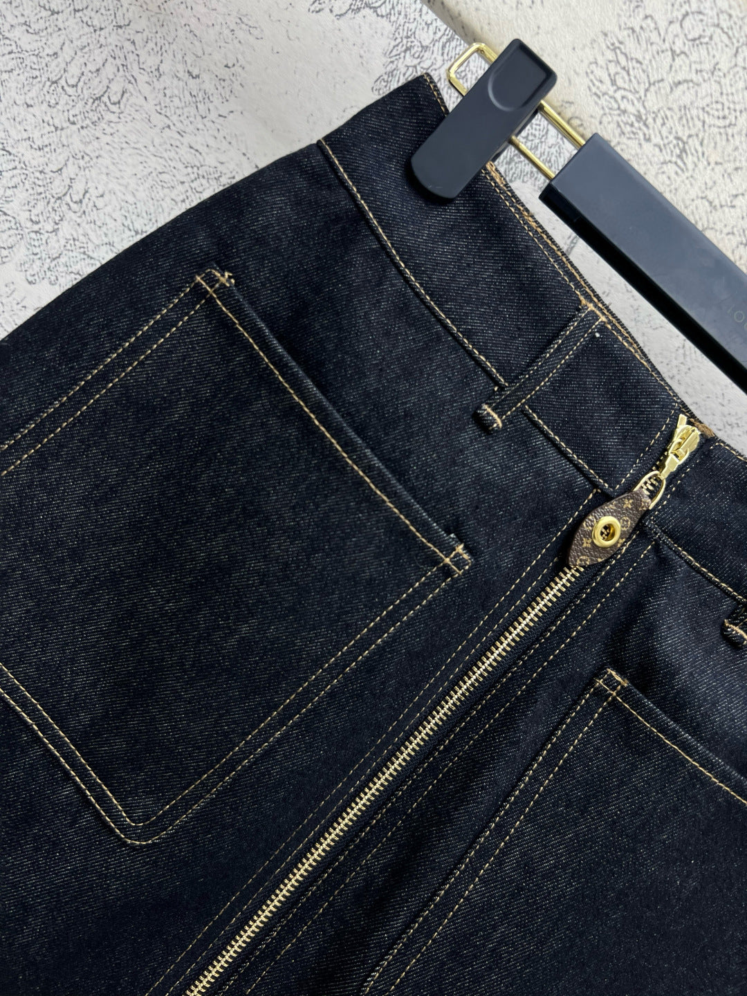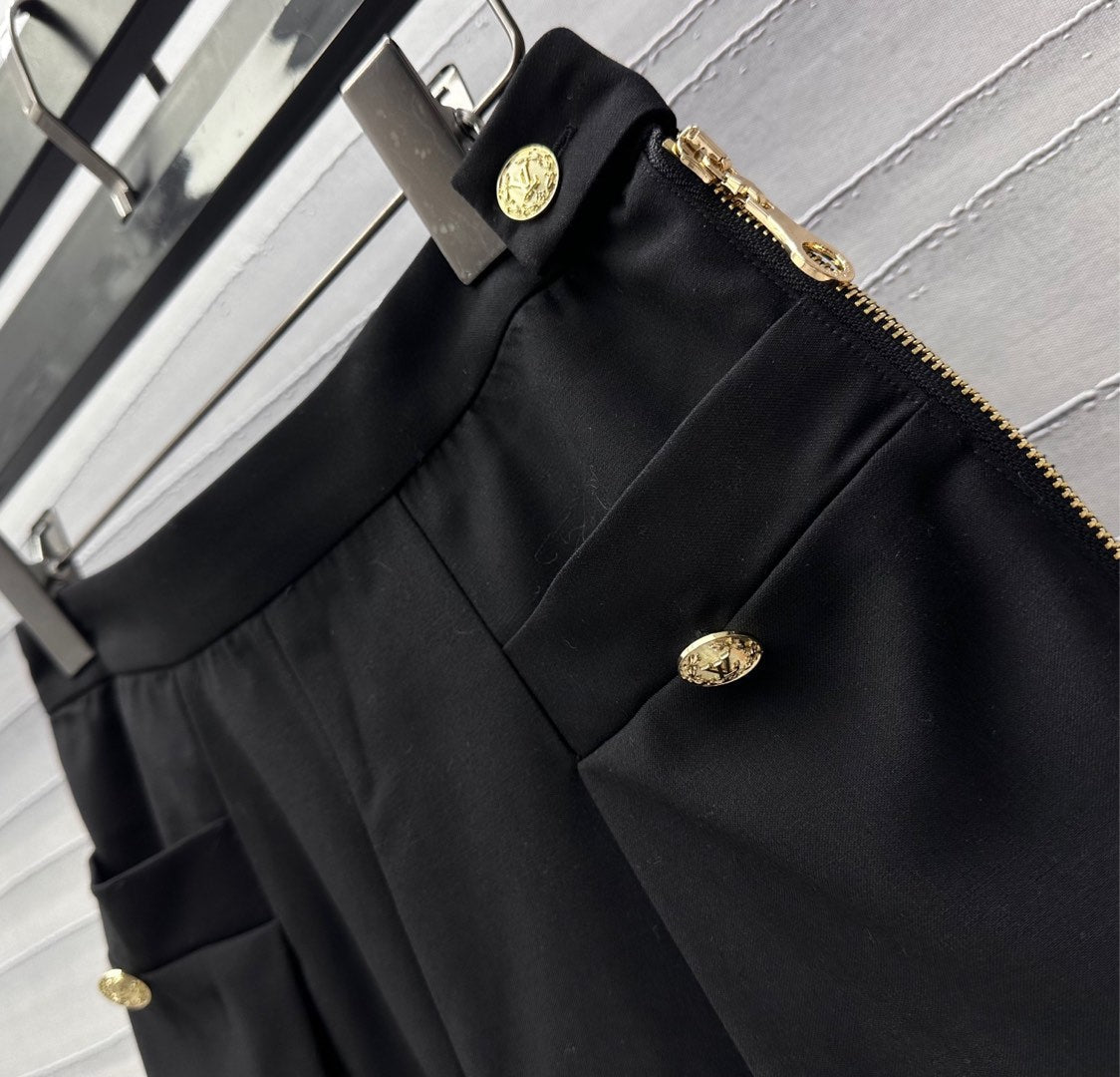 LV 25 Long Skirt Logo Black Polyamide Wool