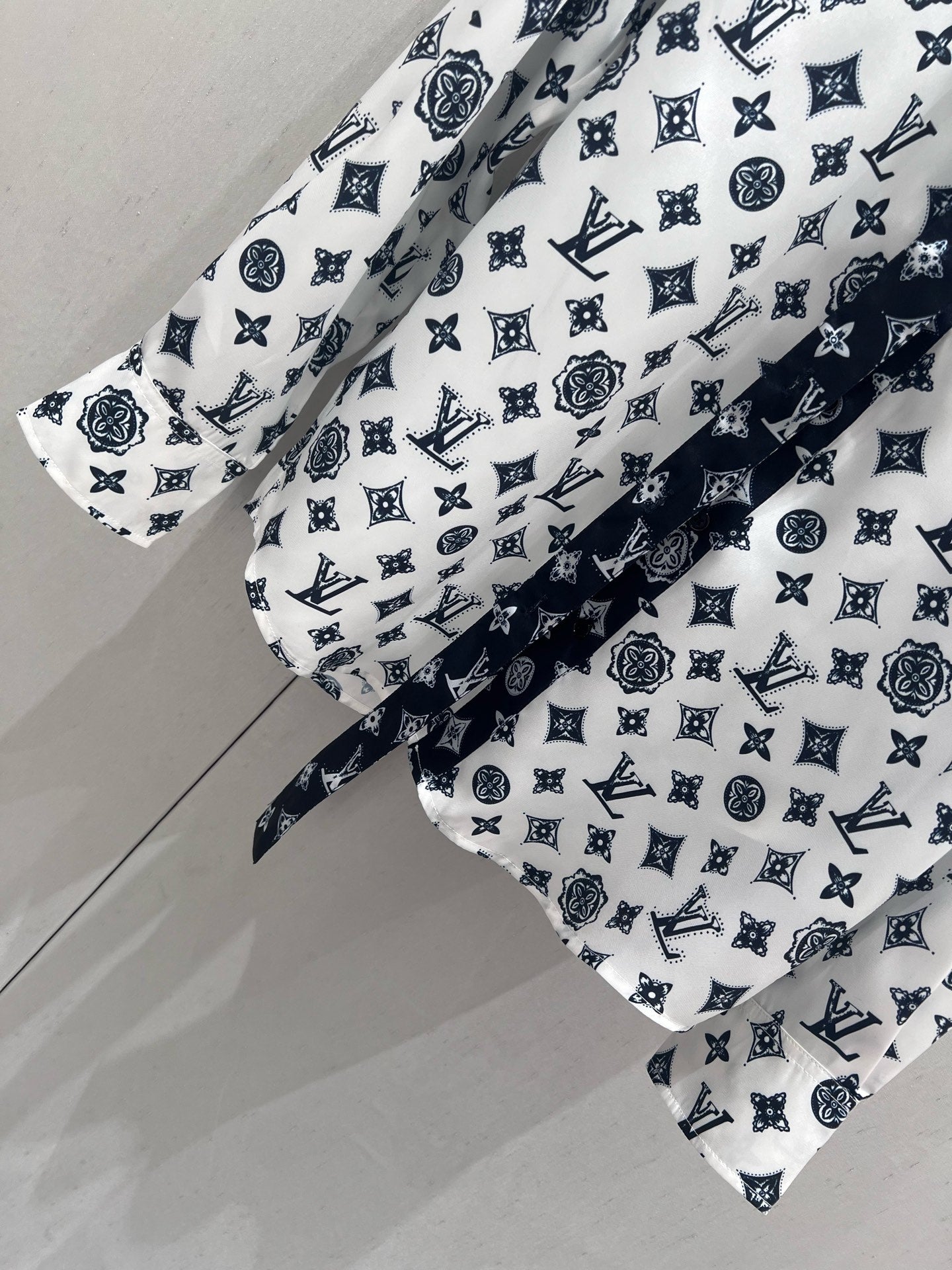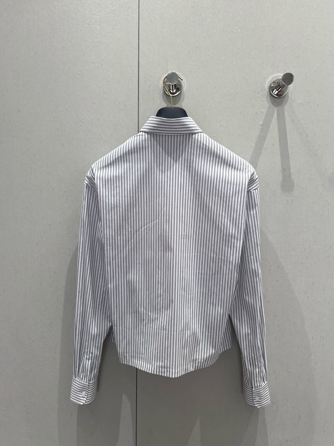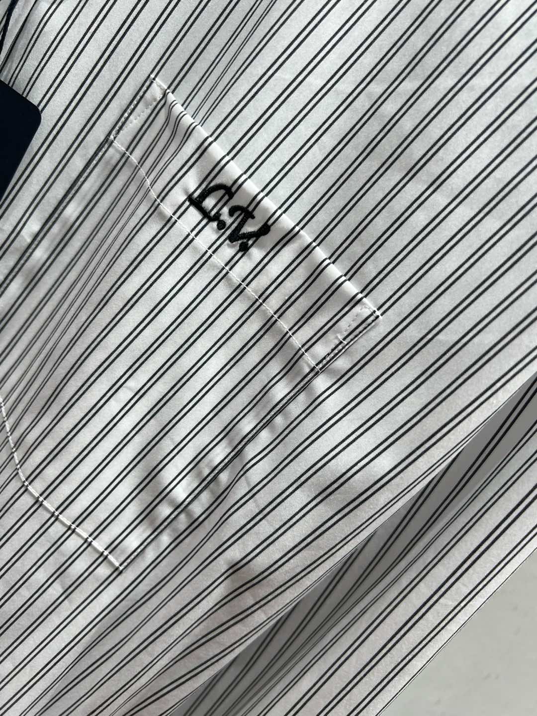 LV 25 Striped Short Long-Sleeved Shirt Black White 209245