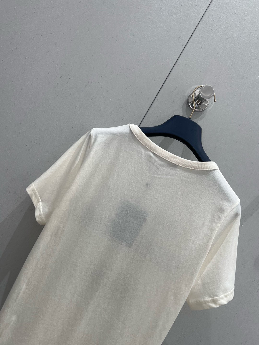 LV 25 Neck T-shirt White Mix Grey Cotton