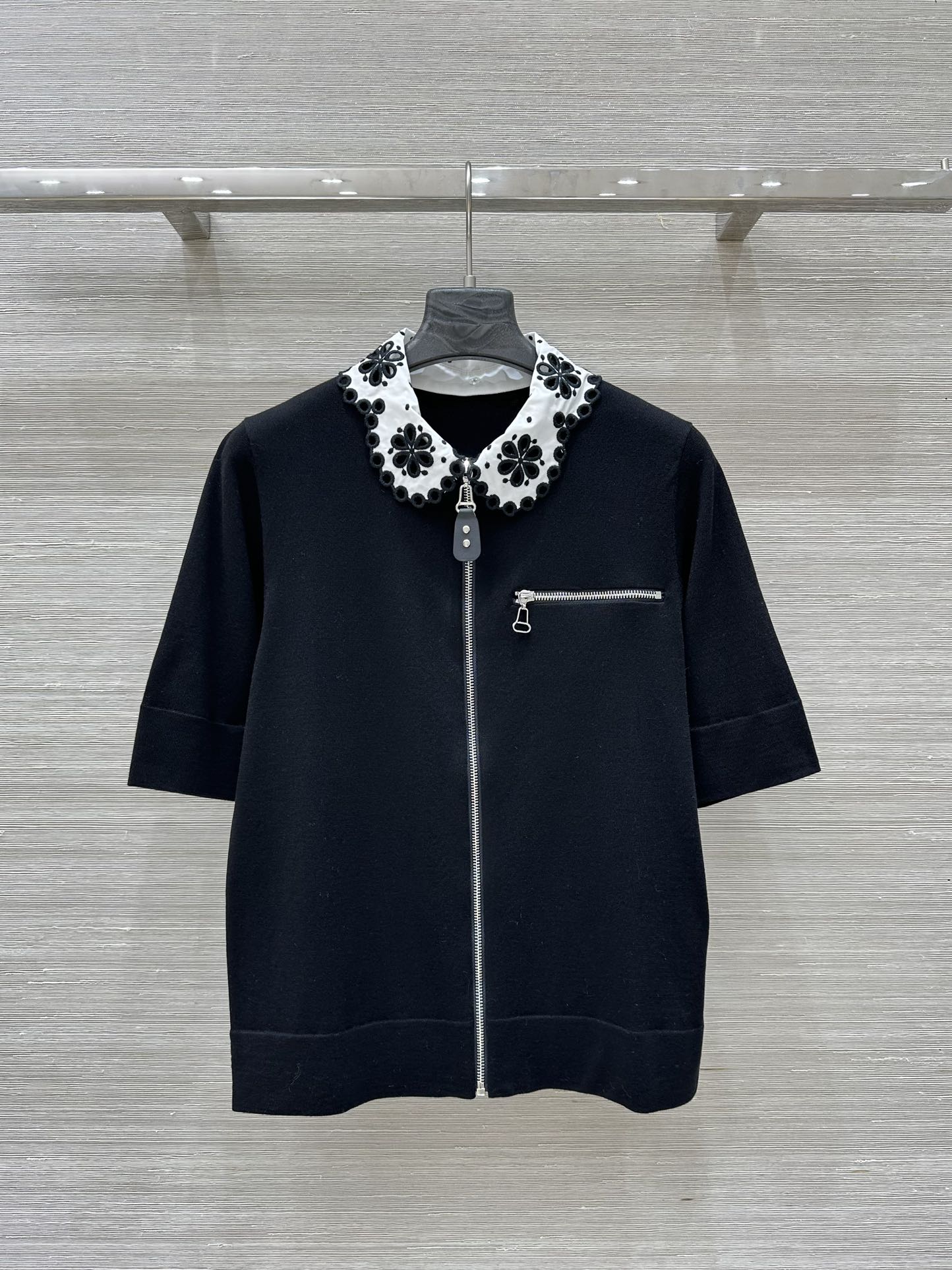 LV 25 Knitted Short-Sleeved Top Grey Wool