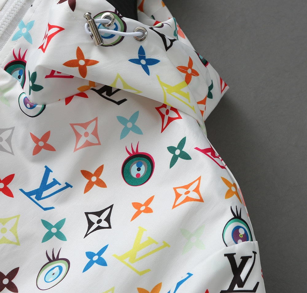 LV WHITE WINDBREAKER WITH COLORFUL MONOGRAM 238983