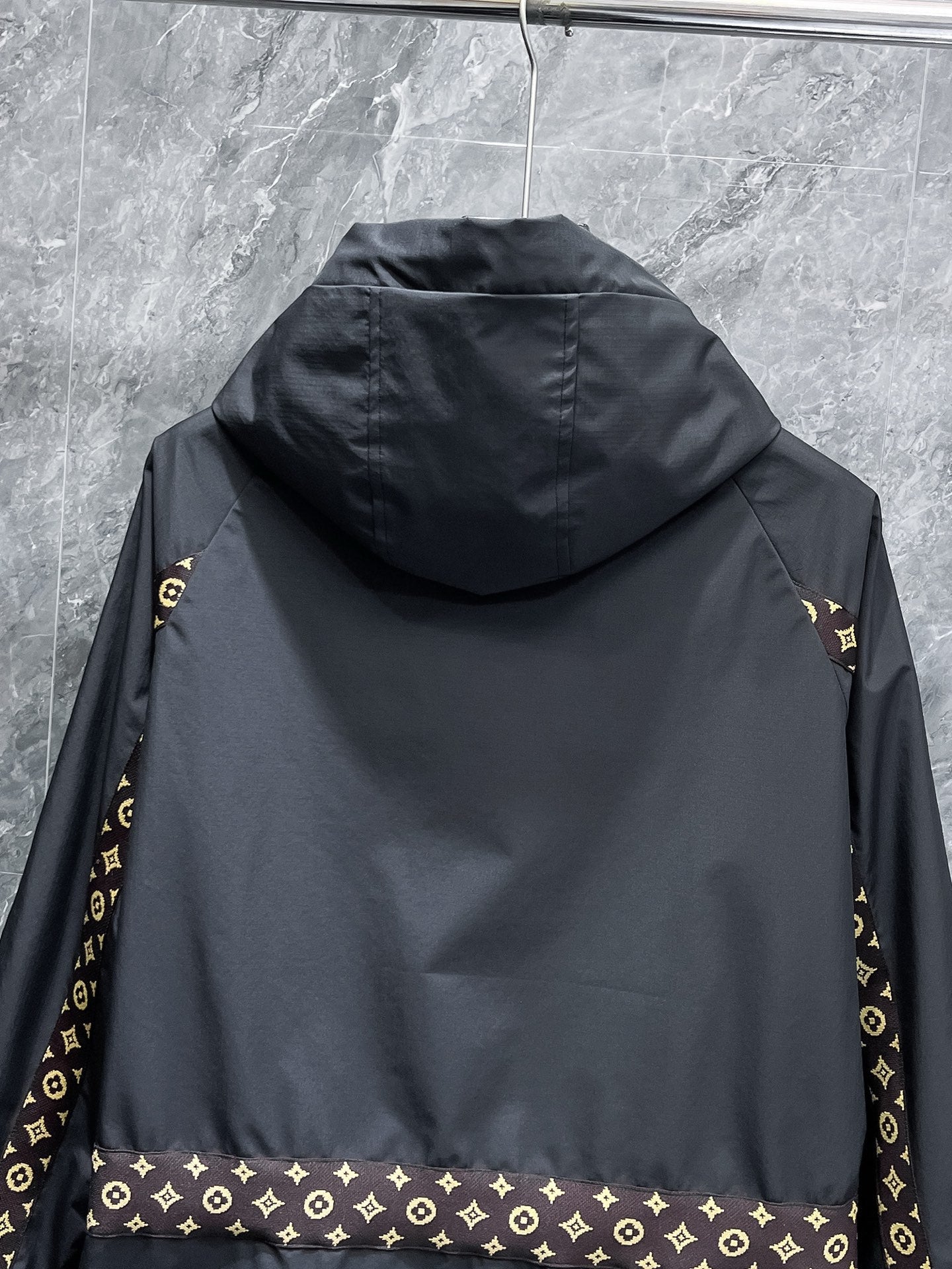 LV HOODED JACKET IN BLACK DAMIER AND BROWN TRIM 239036