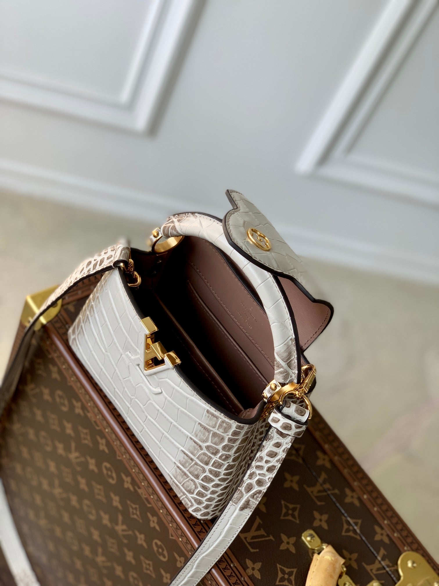 CAPUCINES MINI 21 WHITE CROCODILE EMBOSSED CALFSKIN SILVER HARDWARE