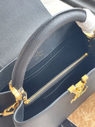 CAPUCINES EAST-WEST 33 IN BLACK CALFSKIN GOLD HARDWARE