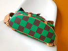 CHRISTOPHER BACKPACK 47 IN BROWN GREEN DAMIER POP COATED CANVAS