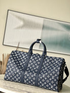 LV Keepall Bandouliere 50 Navy Blue Monogram Shadow Cowhide